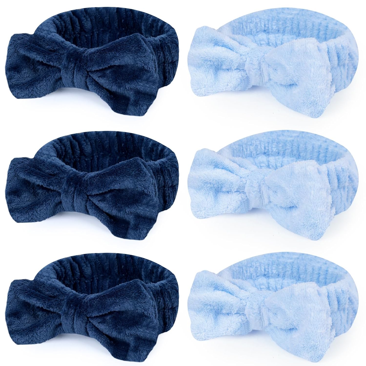 Shindel Spa Bow Headband - 6 Pack Cute Fuzzy Skin Care Headbands for Teen Girls' Face Washing & Shower - Blue