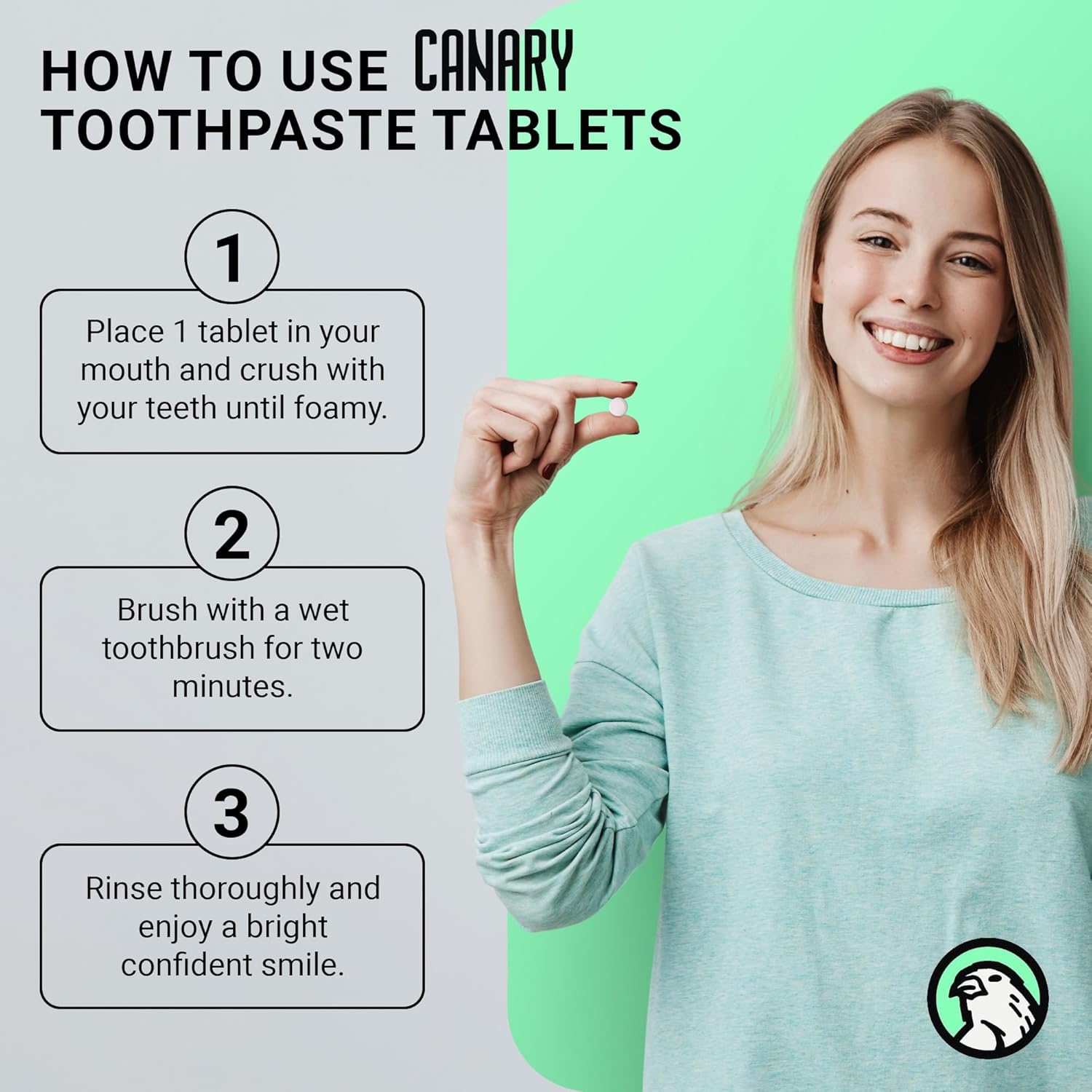 Canary Nano Hydroxyapatite Toothpaste Tablets Watermelon- Remineralizing, Fluoride Free, All Natural Tabs with Xylitol - Great for Kids, Plastic Free - 126 Count