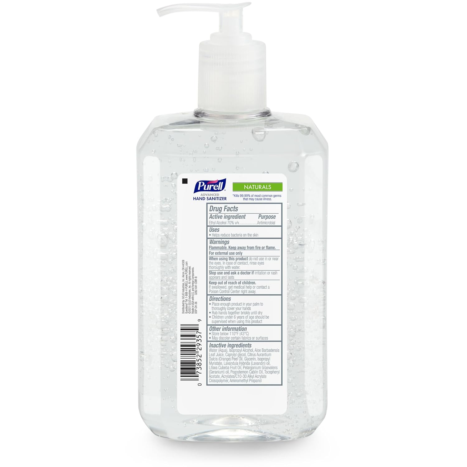 - Case includes: (1) 24 fl oz PURELL Advanced Hand Sanitizer Naturals bottle, (2) 2 fl oz aluminum bottles (shipped empty)