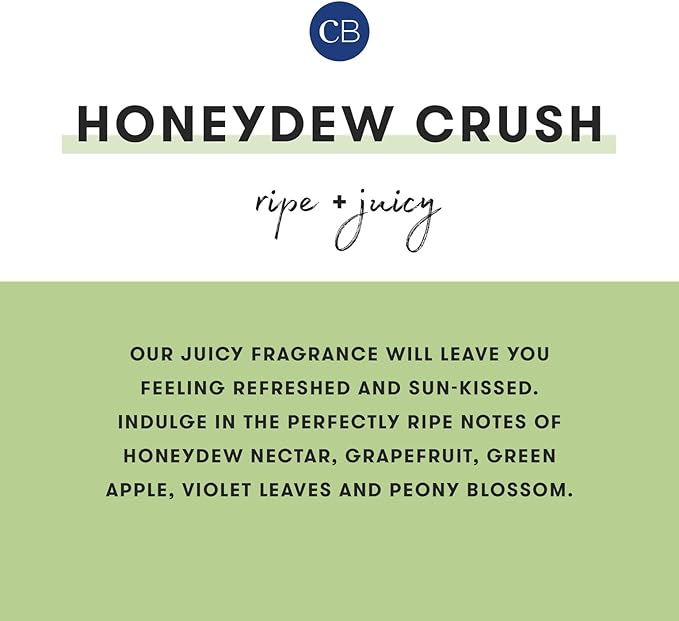 - Honeydew Crush Scented Candles - Our juicy fragrance will leave you feeling refreshed and sun-kissed. Indulge in the perfectly ripe notes of honeydew nectar, grapefruit, green apple, violet leaves and peony blossom.