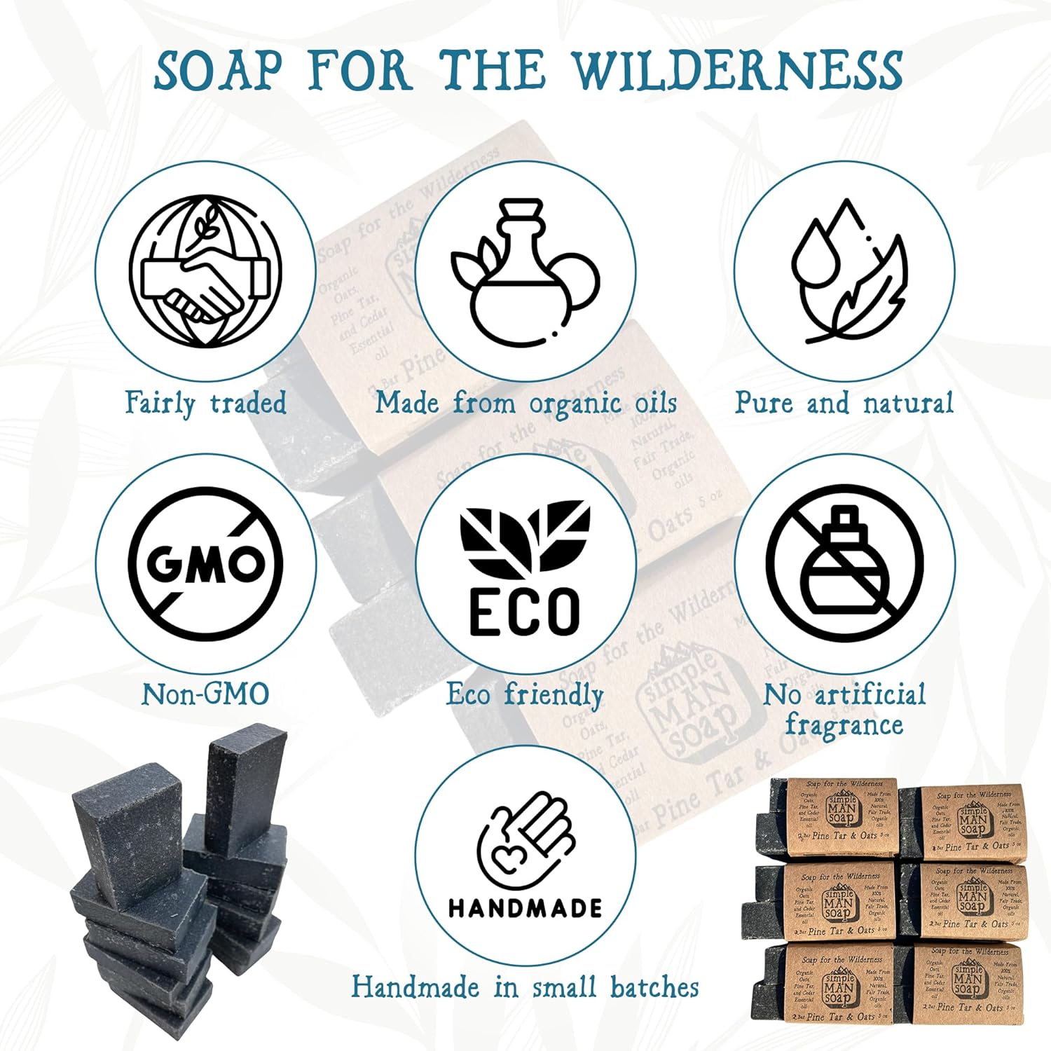 SimpleMan Soap Bar (Pine Tar and Oat) - Men’s soap with Organic & Fair Trade Essential Oils - All Natural, Handmade Man Bath Soap Bars-Pack of 12-2.5 Ounce bars(30 Ounces Total)