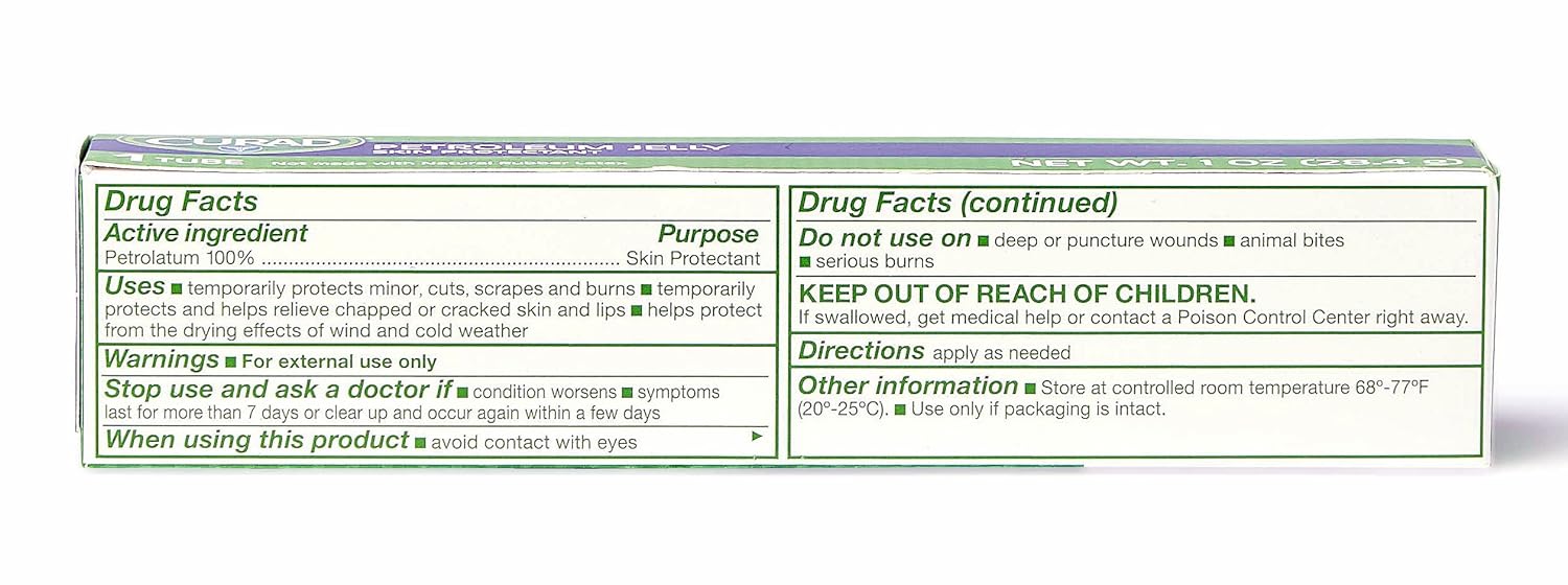 - Convenient Packaging: The CURAD Petroleum Jelly Skin Protectant comes in a 1oz tube, making it easy to carry around for immediate use, and is sold as a single pack for individual needs