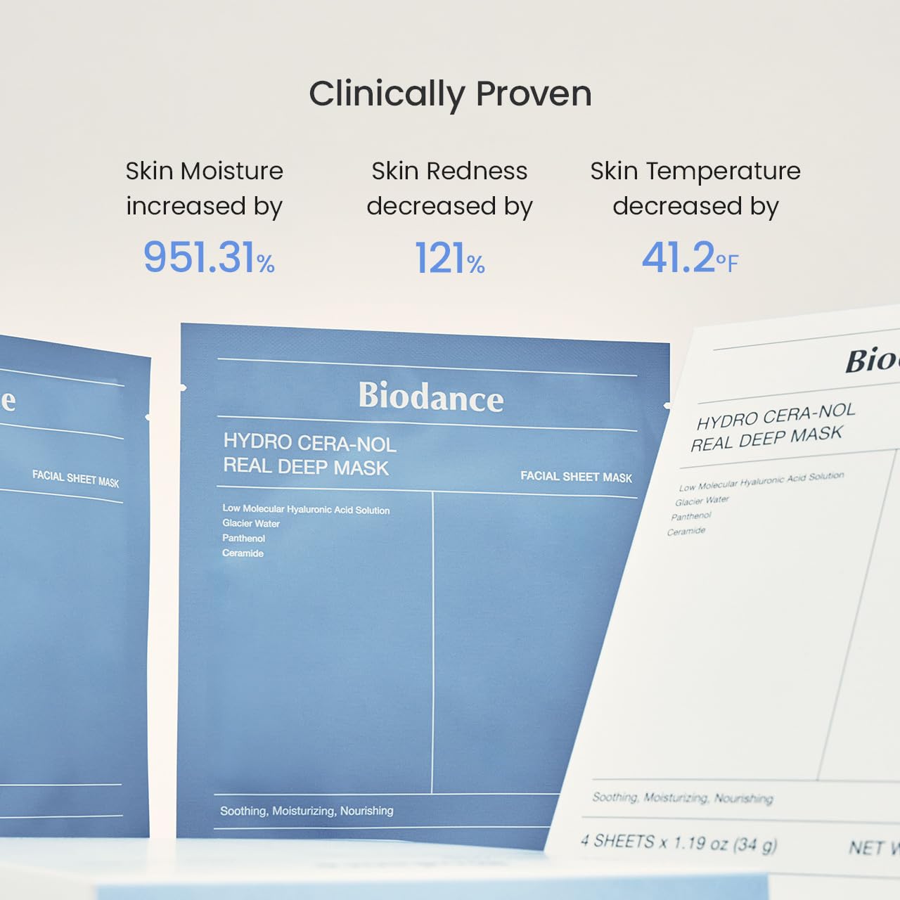 BIODANCE Hydro Cera-nol Real Deep Mask, Overnight Hydrogel Mask, Hydrating Facial Mask For Sensitive Skin, Redness Reducing & Quick Soothing Effect, Korean Skincare, Stocking Stuffers |1.19oz(34g)x4ea