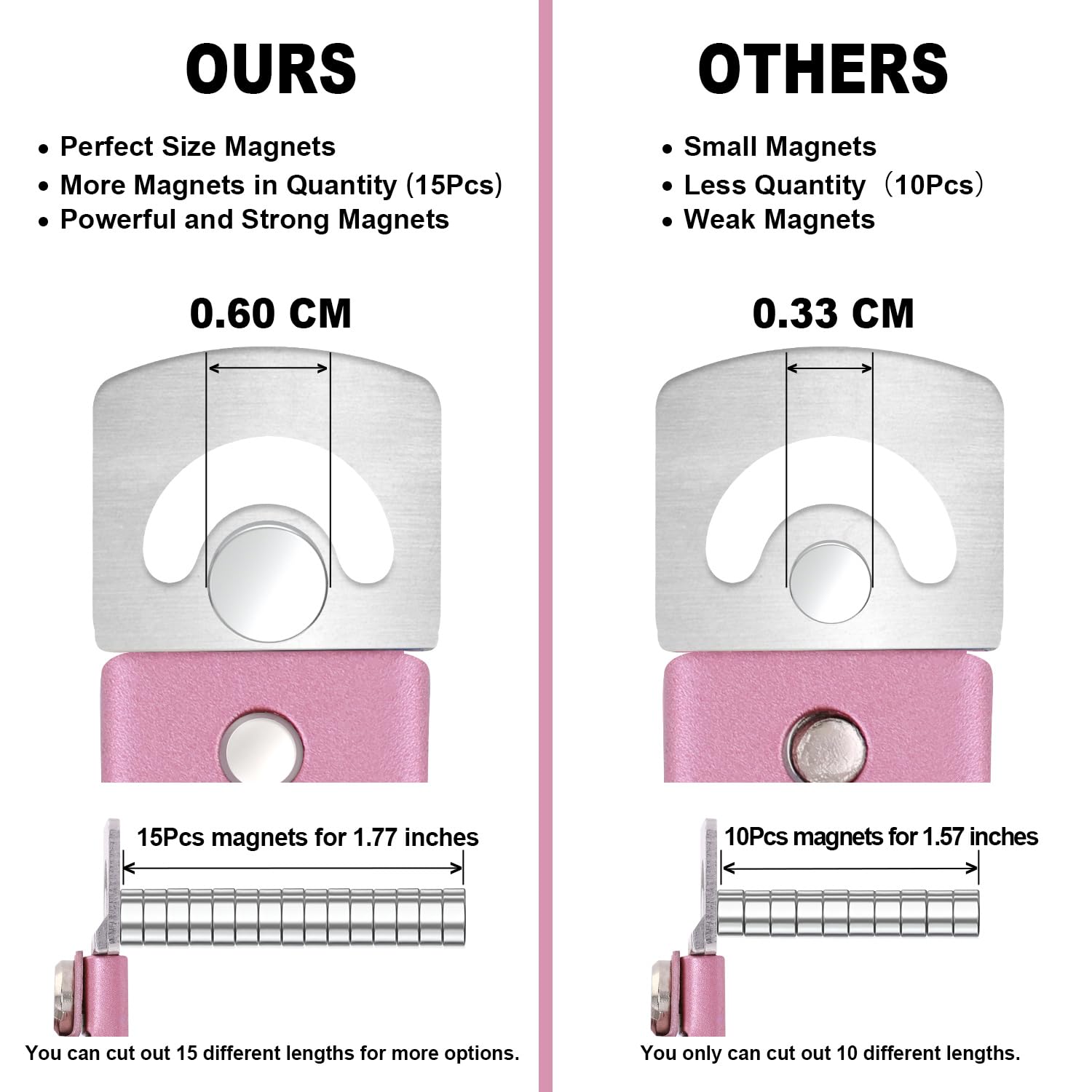 - ✂️Powerful Magnet Sizers -- Easiest nail hack to get your tips the same length in secons!Our magnets have a total length of 1.6 inches, the height of each pcs is 0.14 inches, you can adjust the desirable length by using different numbers of magnets.If you are worried that the magnets will move, you can fix the first magnet with glue on the clipper.