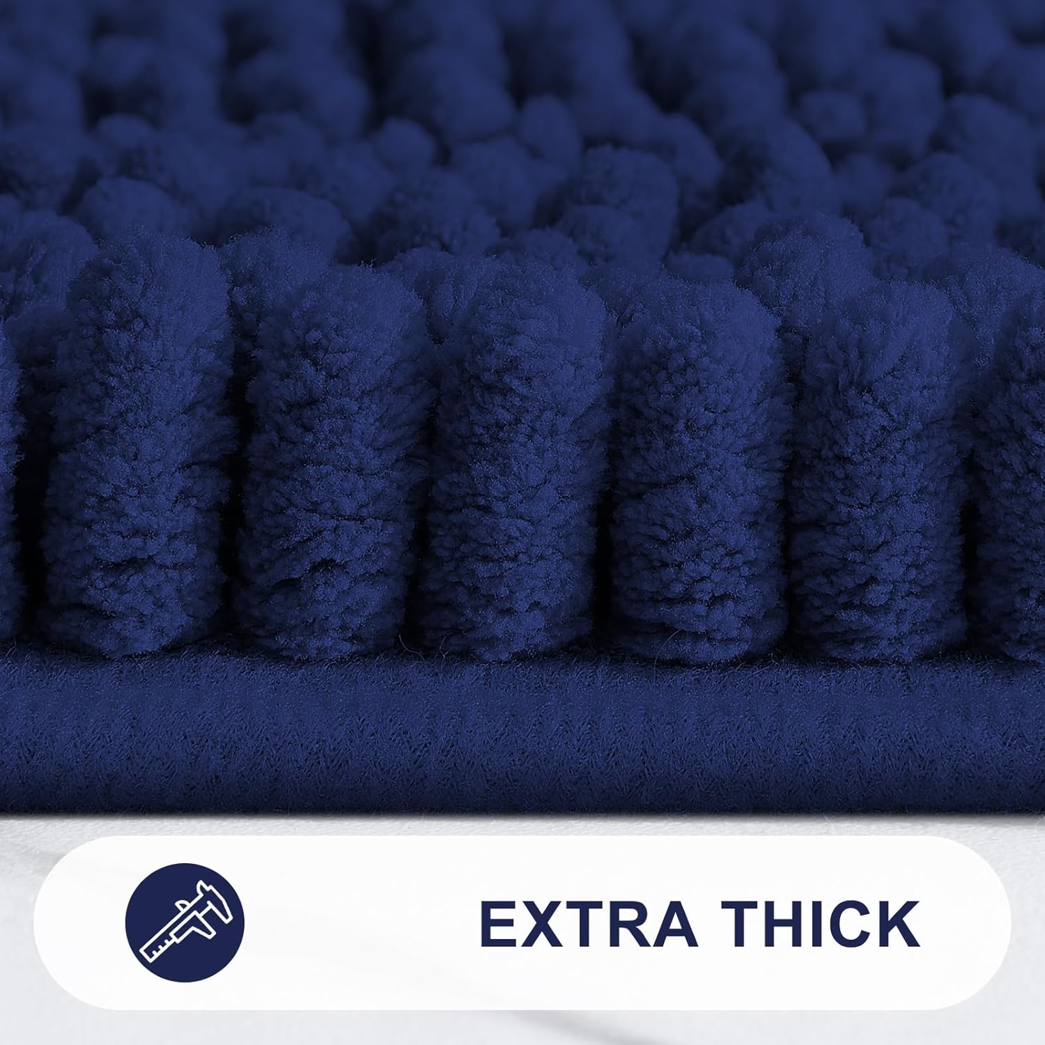 Grandaily Chenille Striped Bathroom Rugs 59x35, Extra Thick and Absorbent Bath Mats, Non-Slip Soft Plush Shaggy Shower Carpet, Machine Wash Dry, Bath Rug for Bathroom, Navy