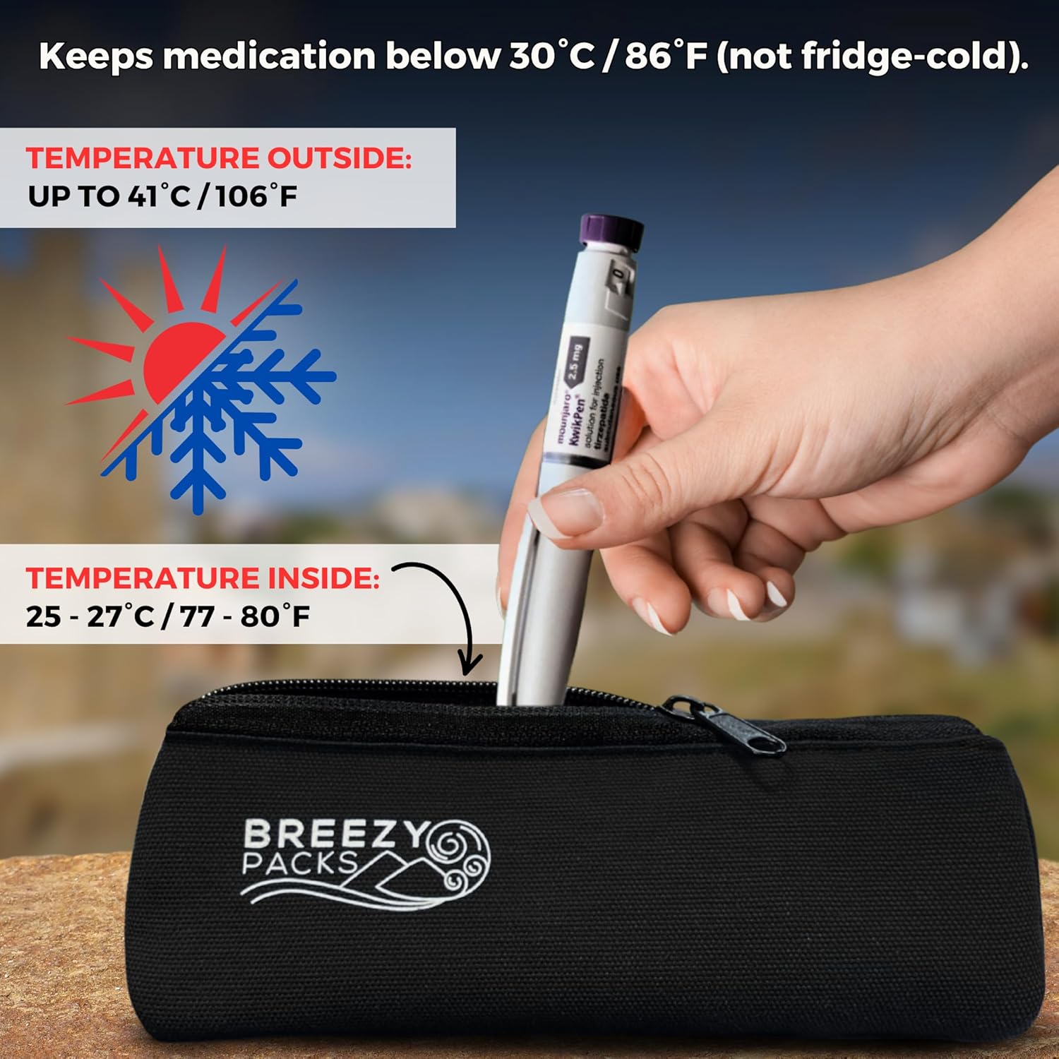 - UP TO 41°C/106°F - Will keep your medicine under 30°C / 86°F even at hot temperatures. For more extreme temperatures, check out our other models.