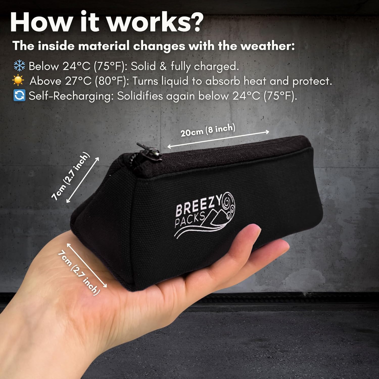 - RECHARGES BY ITSELF OVERNIGHT - whenever temperatures are below 24°C/75°F, our active material regenerates by itself; can also be quickly charged in 30min in a fridge.