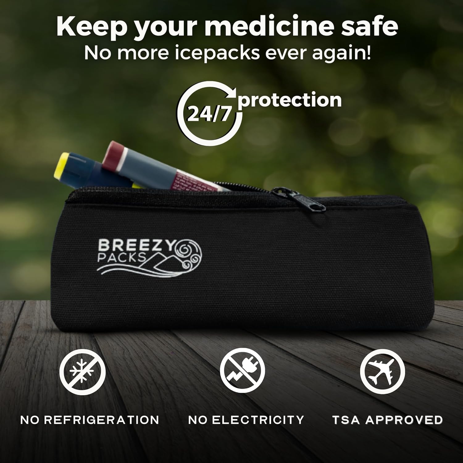 Insulin Pens Cooler Travel Case 24/7 Protection | EpiPen Carry Medical Bag | TSA-Approved Diabetic Case Without Icepacks | Keep medicine at room temp. | Breezy Basic (Black)