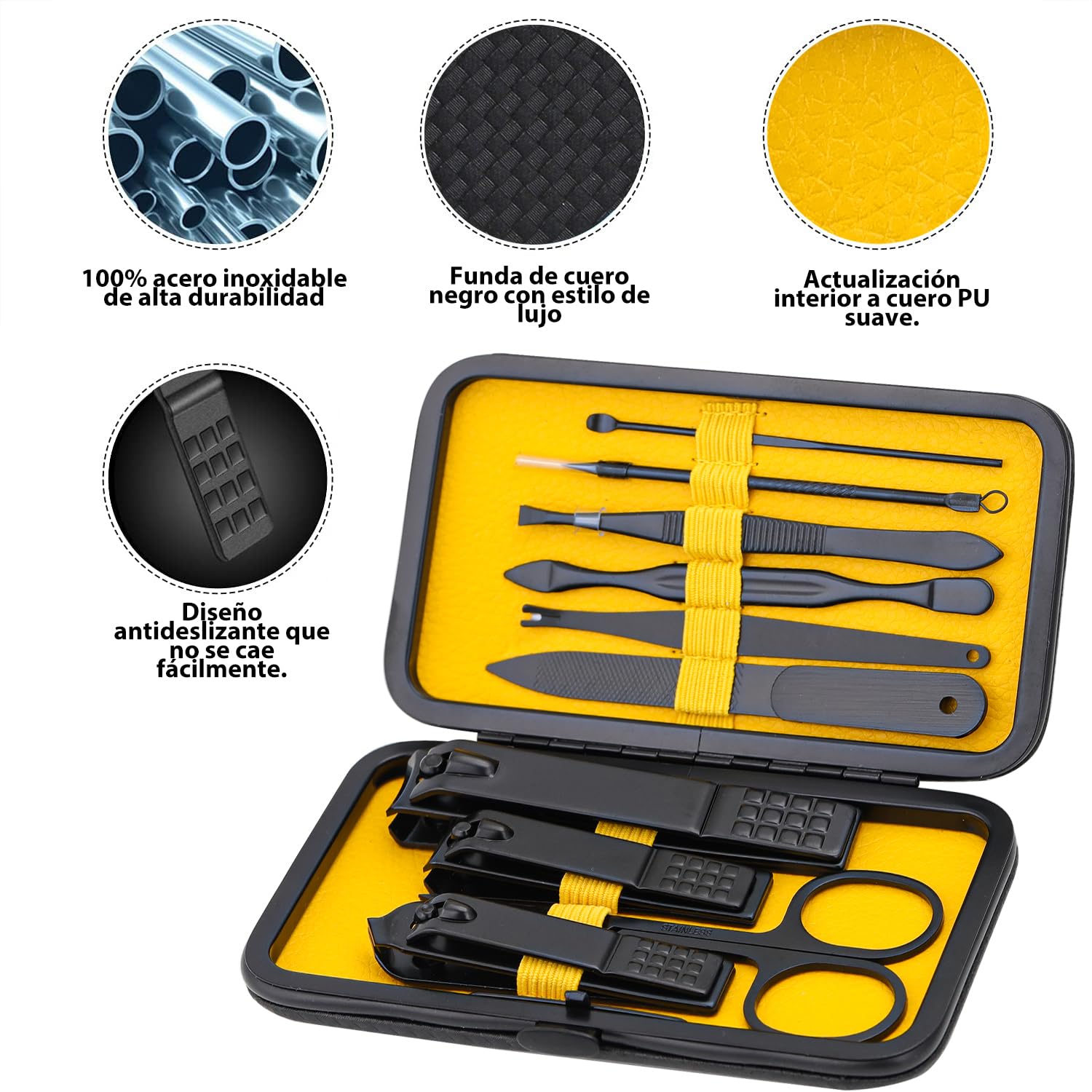 Manicure Set Nail Clippers Kit Professional Stainless Steel Nail Care Tools with Leather Travel Case 10 in 1 Yellow