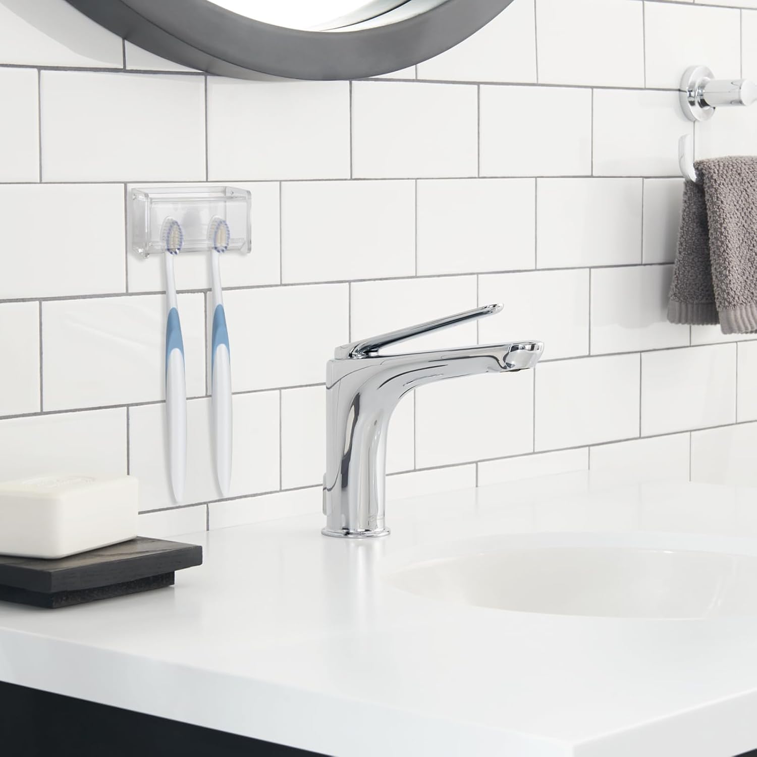 - Self adhesive toothbrush holder is easy to install, self adhesive, no drilling.