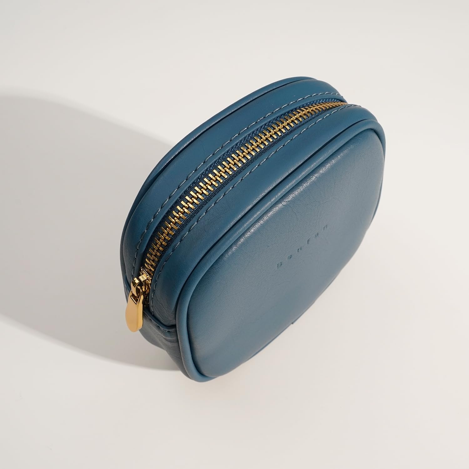 Leather Cosmetic Bag for Women Small Zipper Makeup Bag for Purse Waterproof Travel Makeup Organizer Charger Storage Pouch Color Blue