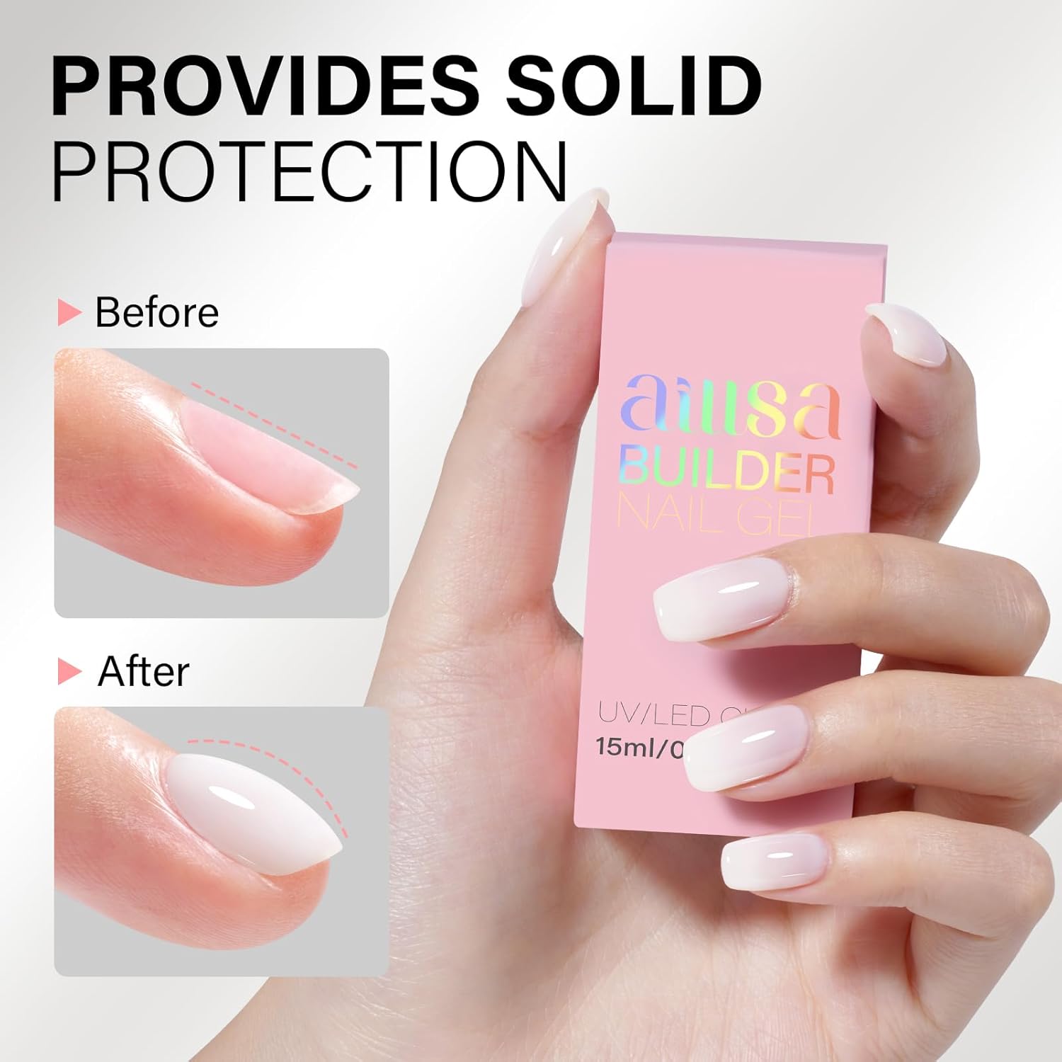 - Long Lasting Builder Gel For Nails: If your nail is uneven or hard enough, the nail gel will be easy to float and peel off. With AILLSA's nude builder gel, it can create a flat nail surface, which will greatly improve the long-lasting of your nail art. Apply in the correct steps, it can protect your nails for more than 21 days.