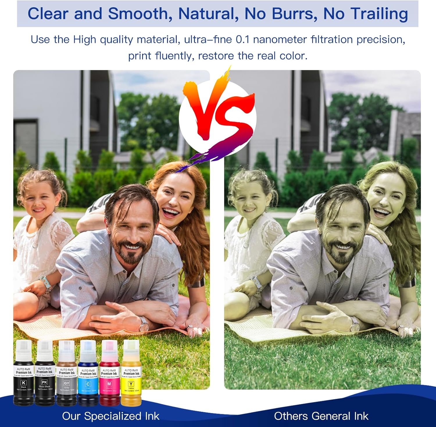 - 【Package Contents】: 1 x Black 552 Ink Refill Bottle 100ml, 1 x Pigment Black 552 Ink Refill Bottle 100ml, 1 x Cyan 552 Ink Reill Bottle 100ml, 1 x Magenta 552 Ink Reill Bottle 100ml, 1 x Yellow 552 Ink Reill Bottle 100ml, 1 x Gery 552 Ink Refill Bottle 100ml (Total 6 Pack, 600ml ), use for Ecotank EcoTank ET-8550 and EcoTank ET-8500