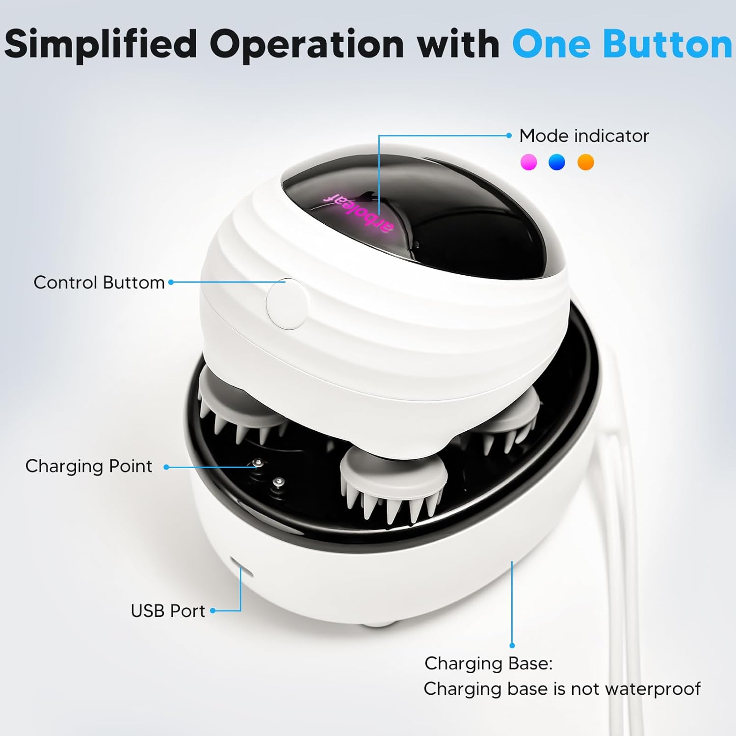 - Rechargeable & Portable: With up to 5 sessions per 2 hour USB charge with our portable and rechargeable electric scalp massager. The head massagers charging base provides secure storage and protection from dust, while the straps facilitate easy carrying. Lightweight and compact, this massager is the perfect companion for home, work, or travel, delivering soothing massages to relieve stress and enhance your mood wherever you go. Remember, avoid inserting hands into the massage heads during use.