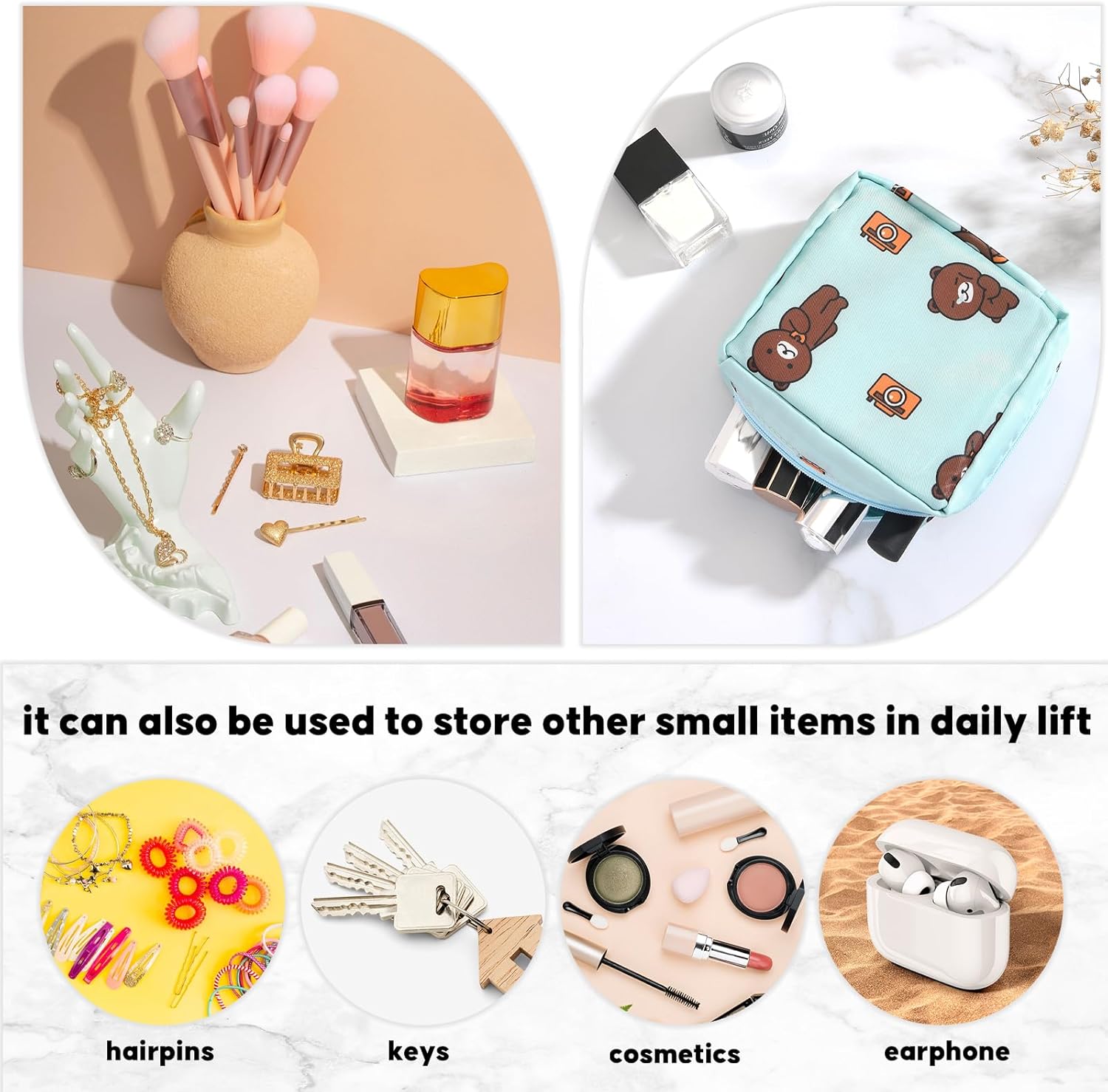 - Privacy Protection: This period bag can be used to store sanitary napkins and period pads discreetly on a table or desk. It can also organize menstrual cups, nursing pads, jewelry, credit cards, coins, keys, etc.