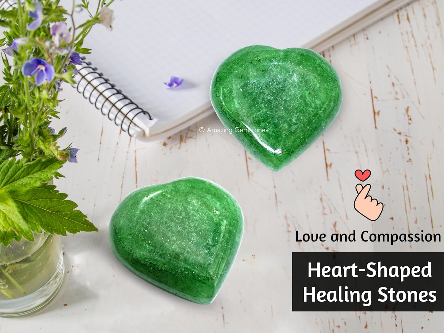 - Green Strawberry Quartz Crystal Heart Palm Worry Stones are polished heart shaped stones that can be used for Back, Neck, Face and Feet Massage therapy, Chakra Balancing, Reiki Healing, Crystal Grid Meditation and many other esoteric healing practices.