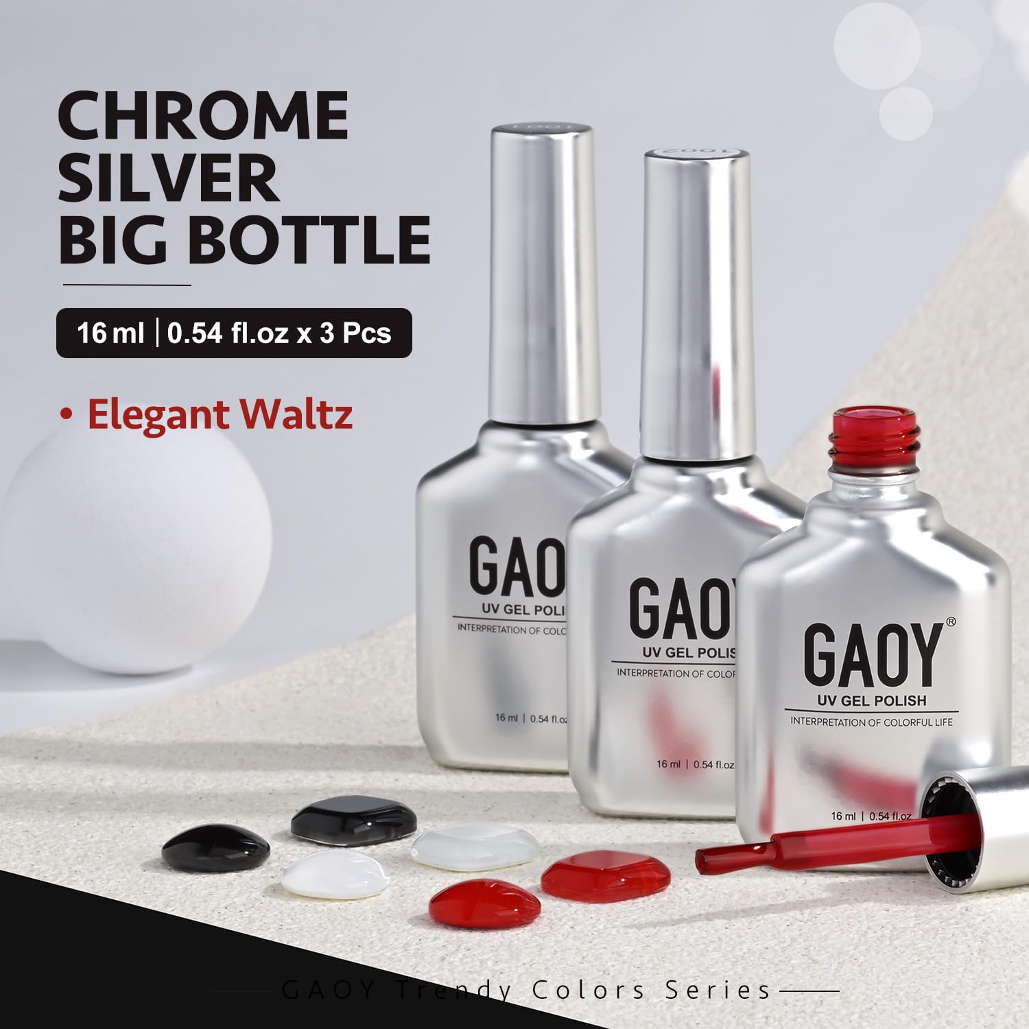 GAOY Gel Nail Polish Kit, 3 Colors 16ml White Red Black, Soak Off UV Gel Polish Set - Elegant Waltz