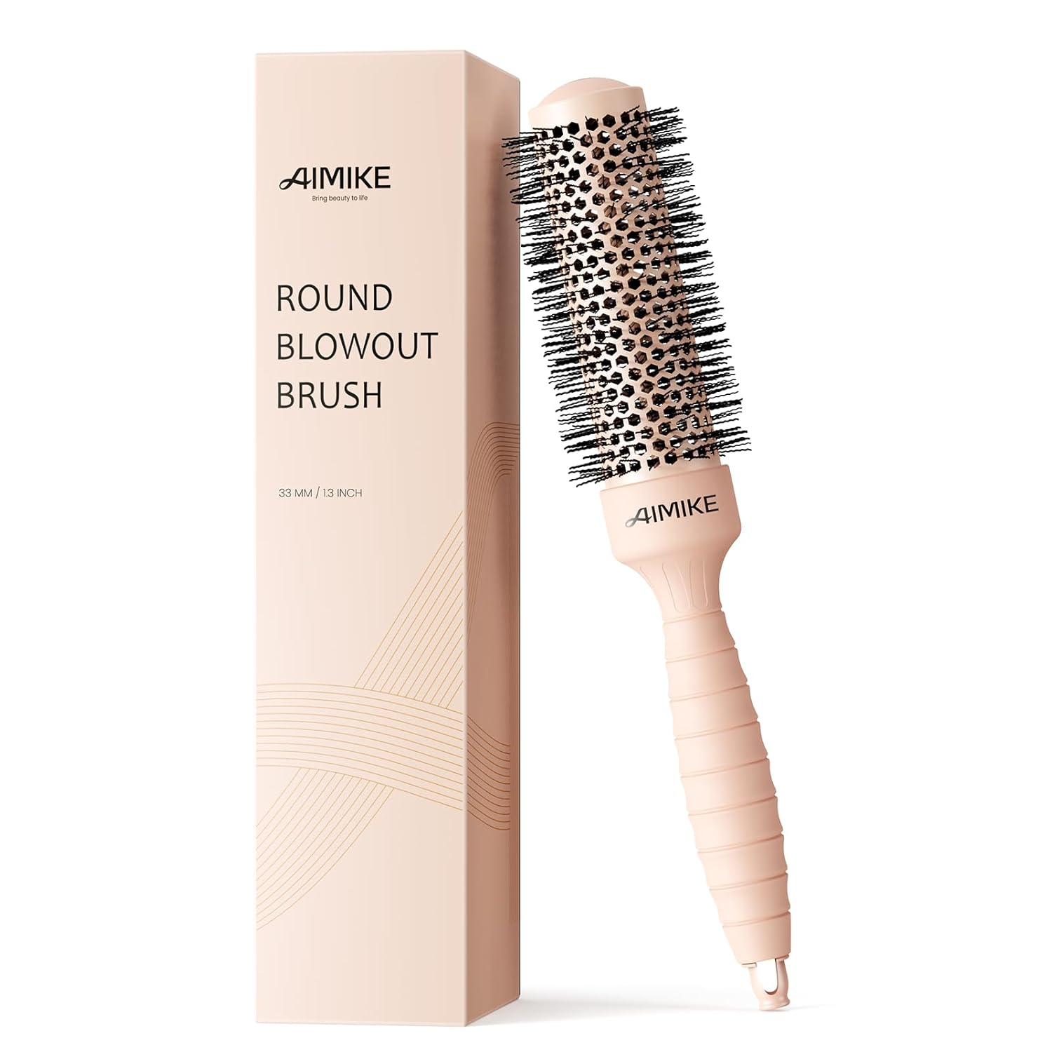 AIMIKE Round Brush for Blow Out, Small Round Hair Brush w/Nano Ion Thermal Ceramic Tech, Professional RoundBrush for Blow Drying & Styling, Maximum Volume and Shine, Barrel 1.3 inch