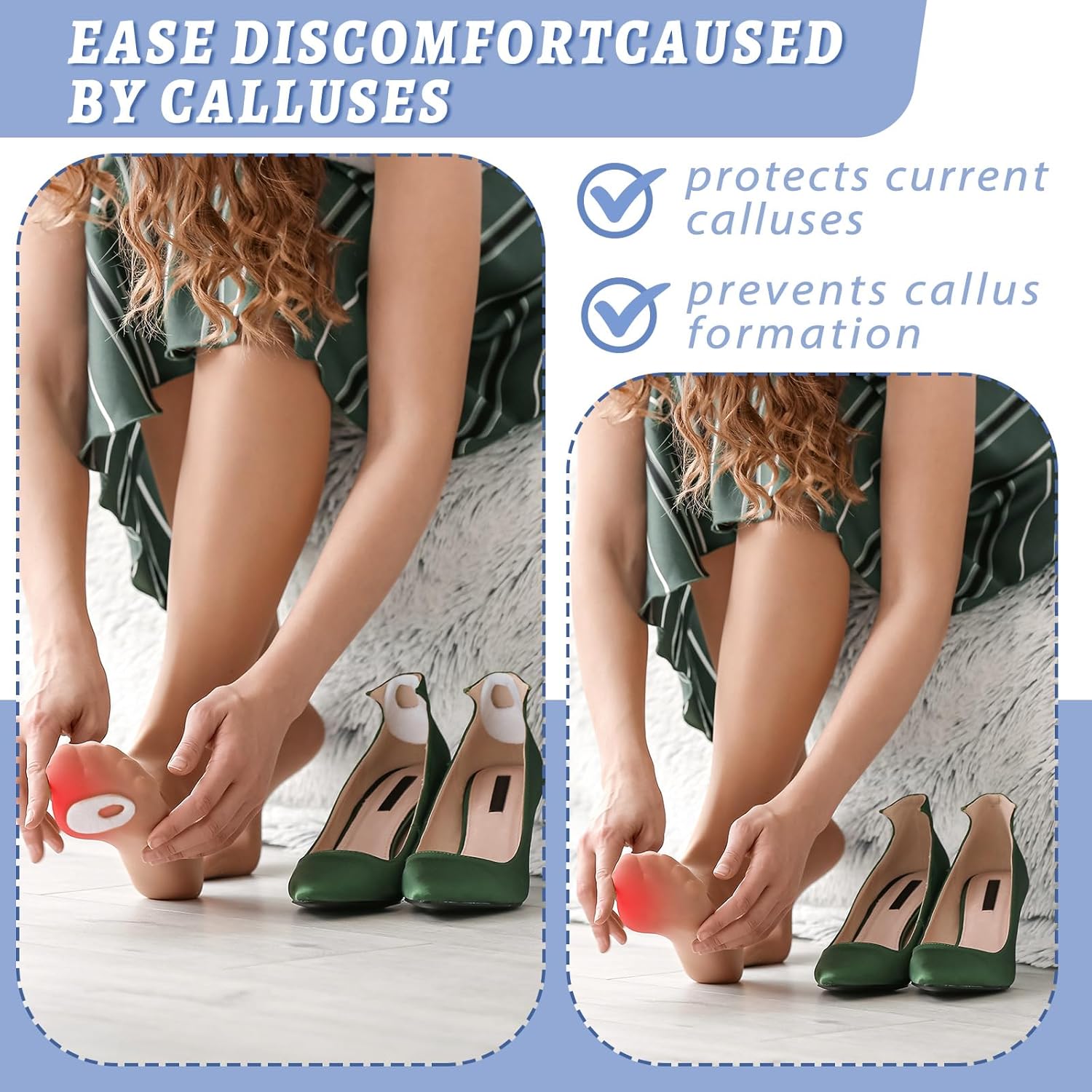 - Pain and Pressure Relief: our callus cushions can reduce friction and pressure on painful callus, giving the relief you need; Their protective design shields skin to prevent painful rubbing, allowing you to continue your day in a comfortable manner