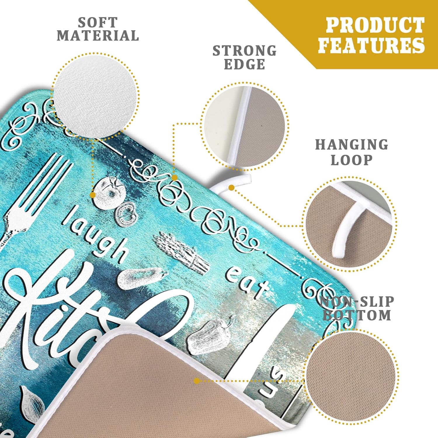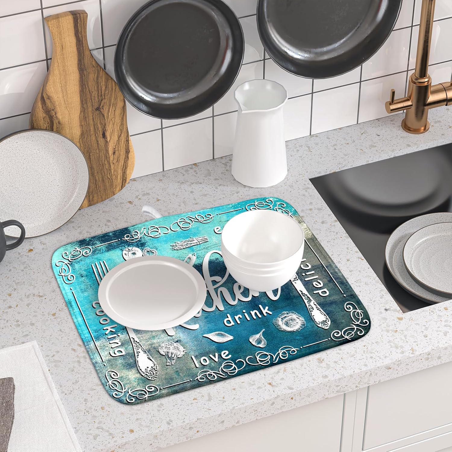 Blue Grey Dish Drying Mat 16x18 Inch Cooking Delicious Absorbent Drying Pad Heat Resistant Dish Drainer Mats for Kitchen Countertop