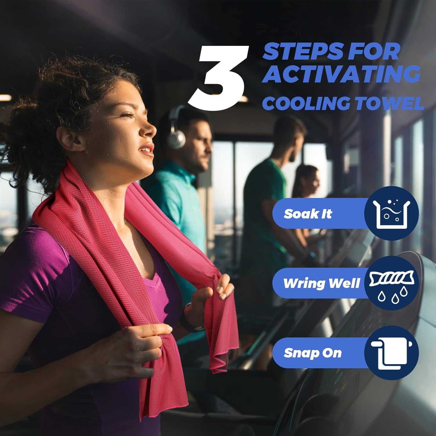 - Instant Cooling towels - The innovative fabric provides instant relief for two or more hours, helping to regulate your body temperature while drawing sweat away. Just get it wet, wring it out, and snap it a few times to activate the cooling, moisture-wicking technology. Compared to ordinary towels , it was lightweight and soft enough that it didn't get in the way when you exercise.