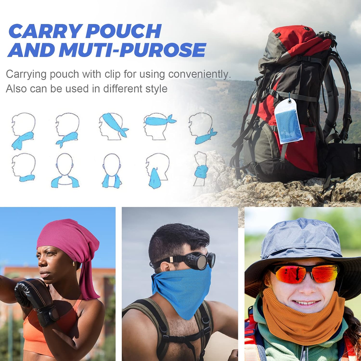 - Multi-purpose - Measuring Size: 40" x 12", Whether you're into hiking, jogging, yoga, barre, HIIT, cycling, Running or breaking a sweat in your living room, the cooling towel will fit be all you need to step up your fitness regime. Whether you rock it as a mask, headband, scarf, or bandana, it'll keep your head cool for hours.