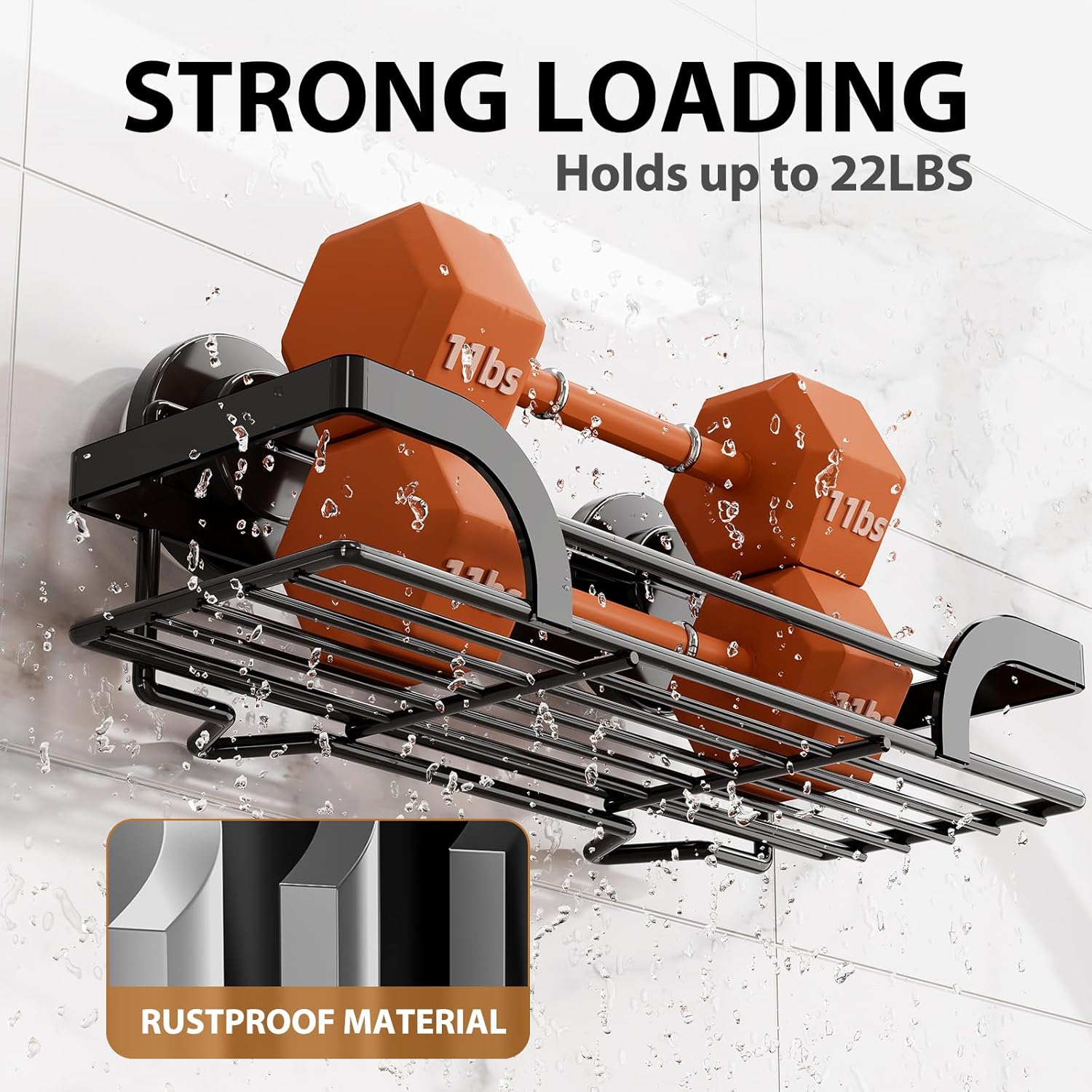 - Powerful & Durable Suction: TPE Suction Cup with bionic design of octopus tentacles and ABS plastic Hook ensures weather proof(-4°F-174°F), waterproof, and anti-aging; bathroom shower organizer with thicken plastic can hold up to 10 KG / 22 lbs and stick sturdy for years after installation without any concerns