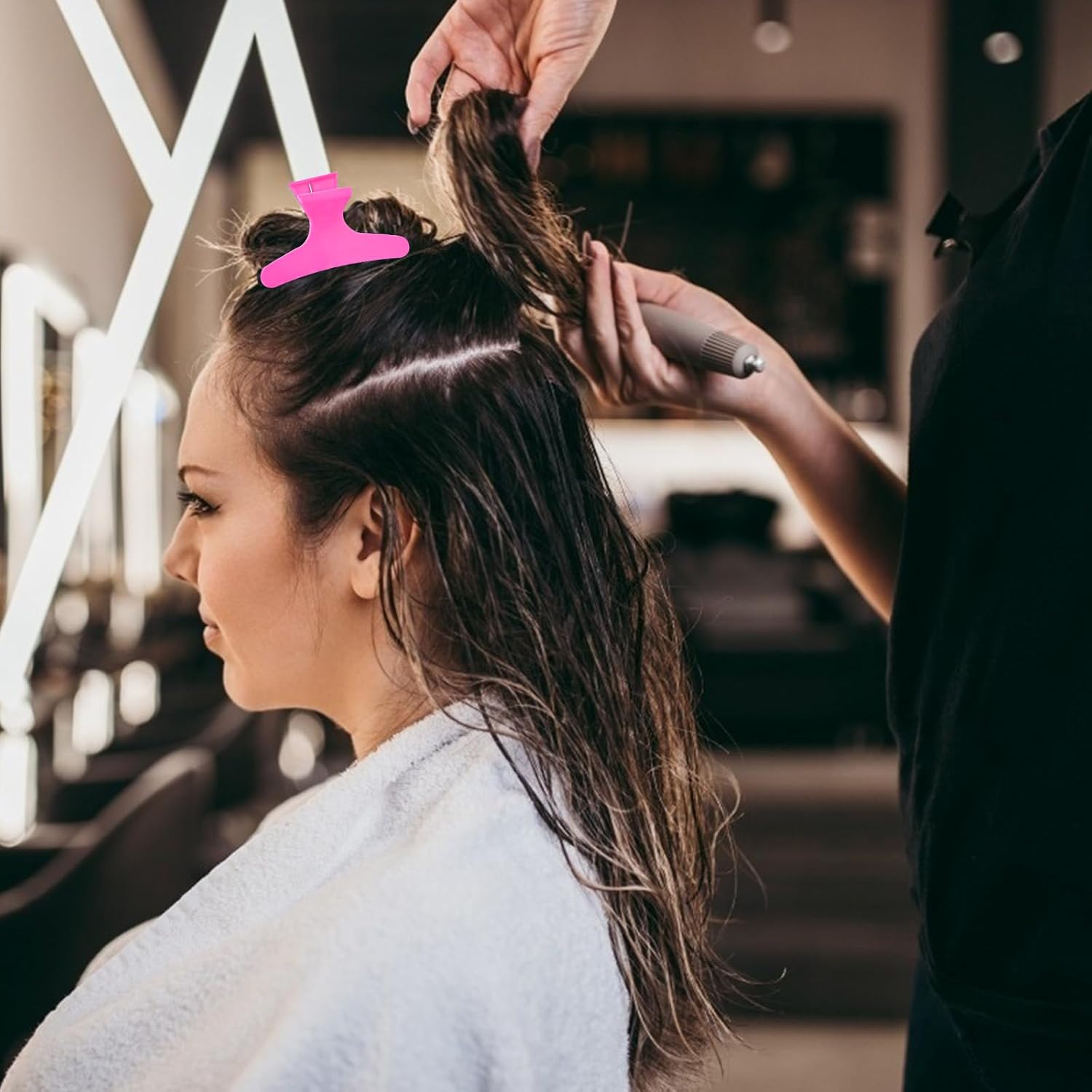 Ondder Hot Pink Hair Clips for Styling Sectioning Butterfly Pro Hair Claws Clamps Clips for Cutting, Styling, Sectioning, Coloring Hair Styling Claw Clips Hair Accessories