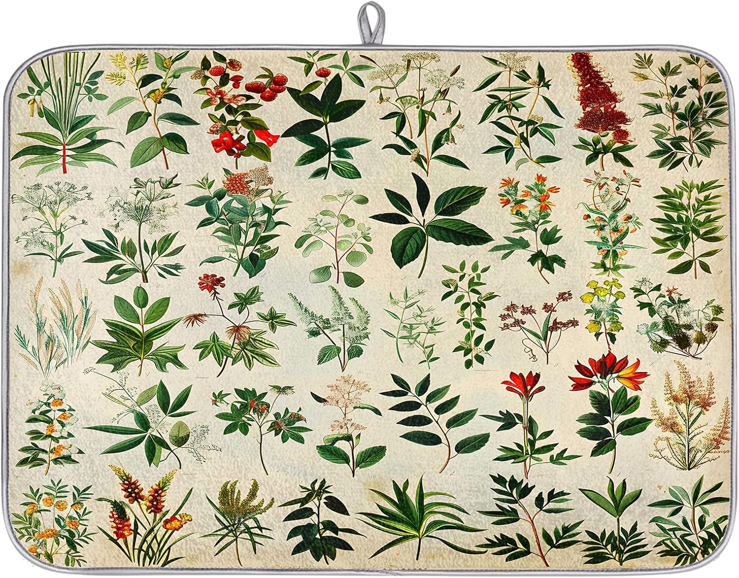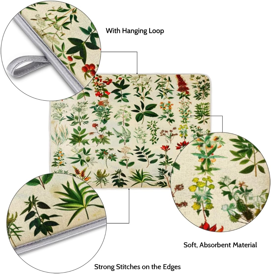 Hexteria Dish Drying Mat For Kitchen Counter Absorbent Dish Mat Microfiber Drainer Drying Kitchen Mat 18x24 In Quich Dry Mat, Botanical Garden