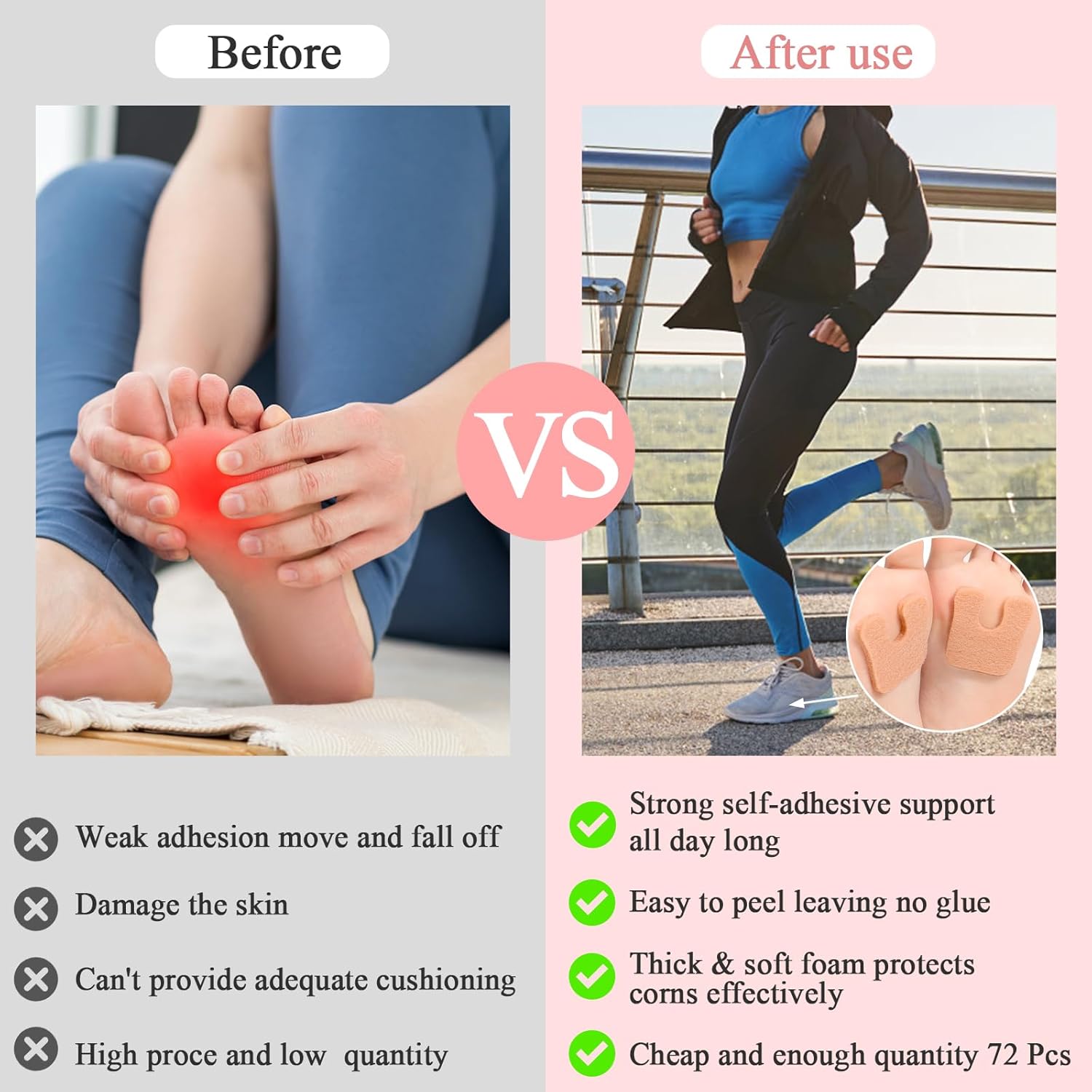 - 72-Pack for Long-Lasting Relief: Metatarsal pads for feet with a total of 72 callus pads in each pack, you are well-equipped for extended periods of use. Whether for personal use or professional foot care, a sufficient quantity to meet your needs for replacement and use in daily life. These cushioning inserts alleviate pressure and pain by protecting the hard layers of skin from friction or brushing off against socks or footwear.