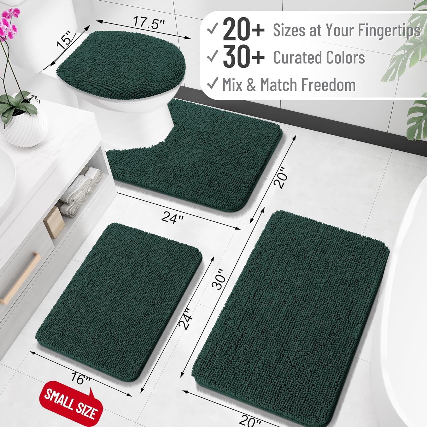 OLANLY Bathroom Rugs 24x16, Extra Soft Absorbent Chenille Bath Rugs, Rubber Backing Quick Dry, Machine Washable Bath Mats for Bathroom Floor, Tub and Shower, Home Decor Accessories, Blackish Green