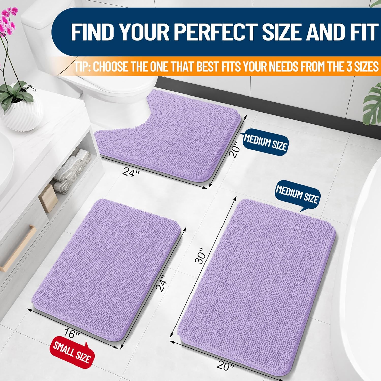 OLANLY Bathroom Rugs 24x16, Extra Soft Absorbent Chenille Bath Rugs, Rubber Backing Quick Dry, Machine Washable Bath Mats for Bathroom Floor, Tub and Shower, Home Decor Accessories, Lavender