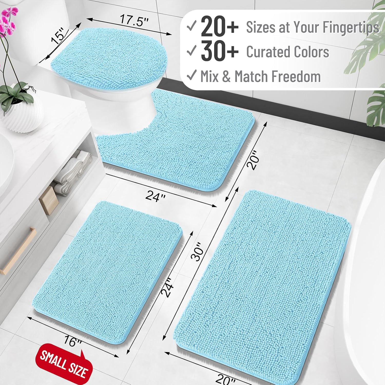 OLANLY Bathroom Rugs 24x16, Extra Soft Absorbent Chenille Bath Rugs, Rubber Backing Quick Dry, Machine Washable Bath Mats for Bathroom Floor, Tub and Shower, Home Decor Accessories, Sky Blue