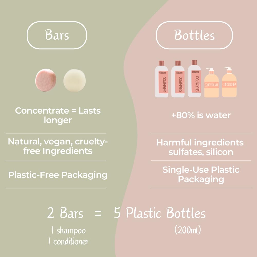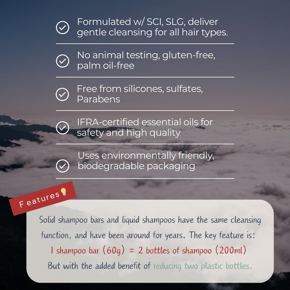 - Replaces 2 Bottles of Liquid Shampoo – One 60g bar = two 200ml liquid bottles, reducing waste and saving space.