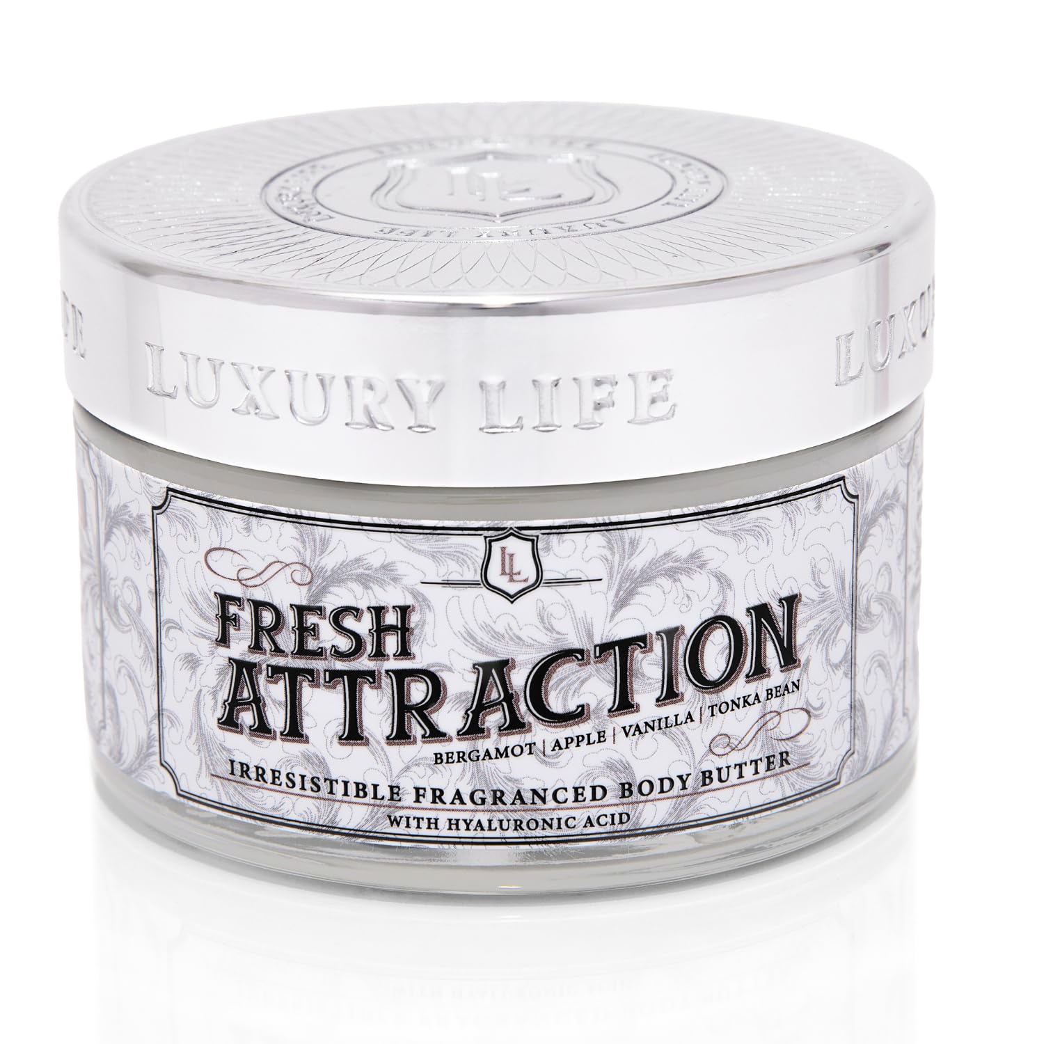 LUXURY LIFE BUTTER - Irresistibly Scented Body Butter with Hyaluronic Acid for Ultimate Moisture. Luxurious Natural Fragrance. Hydrates for a Non-Greasy Glamorous Glow, Fresh Attraction, 5 oz.