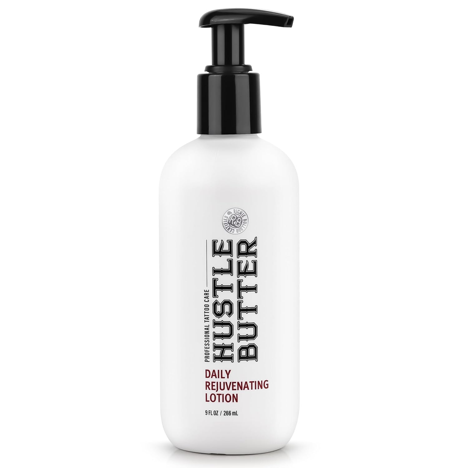 - Daily Tattoo Lotion made with: vegan and cruelty-free ingredients. Like all Hustle Butter products, Daily Rejuvenating Lotion is naturally-derived petroleum-free.