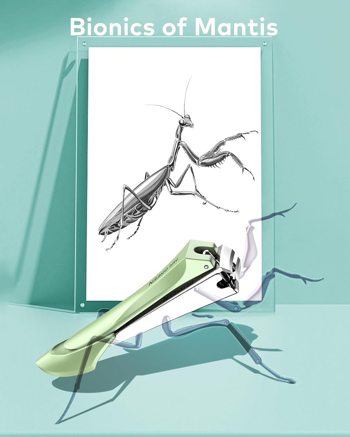 - Bionic and Ergonomic Design: This nail cutter features a bionic design inspired by the shape of a mantis, with smooth and aesthetically pleasing lines. The handle is ergonomically designed with a widened tail for effortless use and a comfortable grip. It combines practicality with a focus on aesthetics.