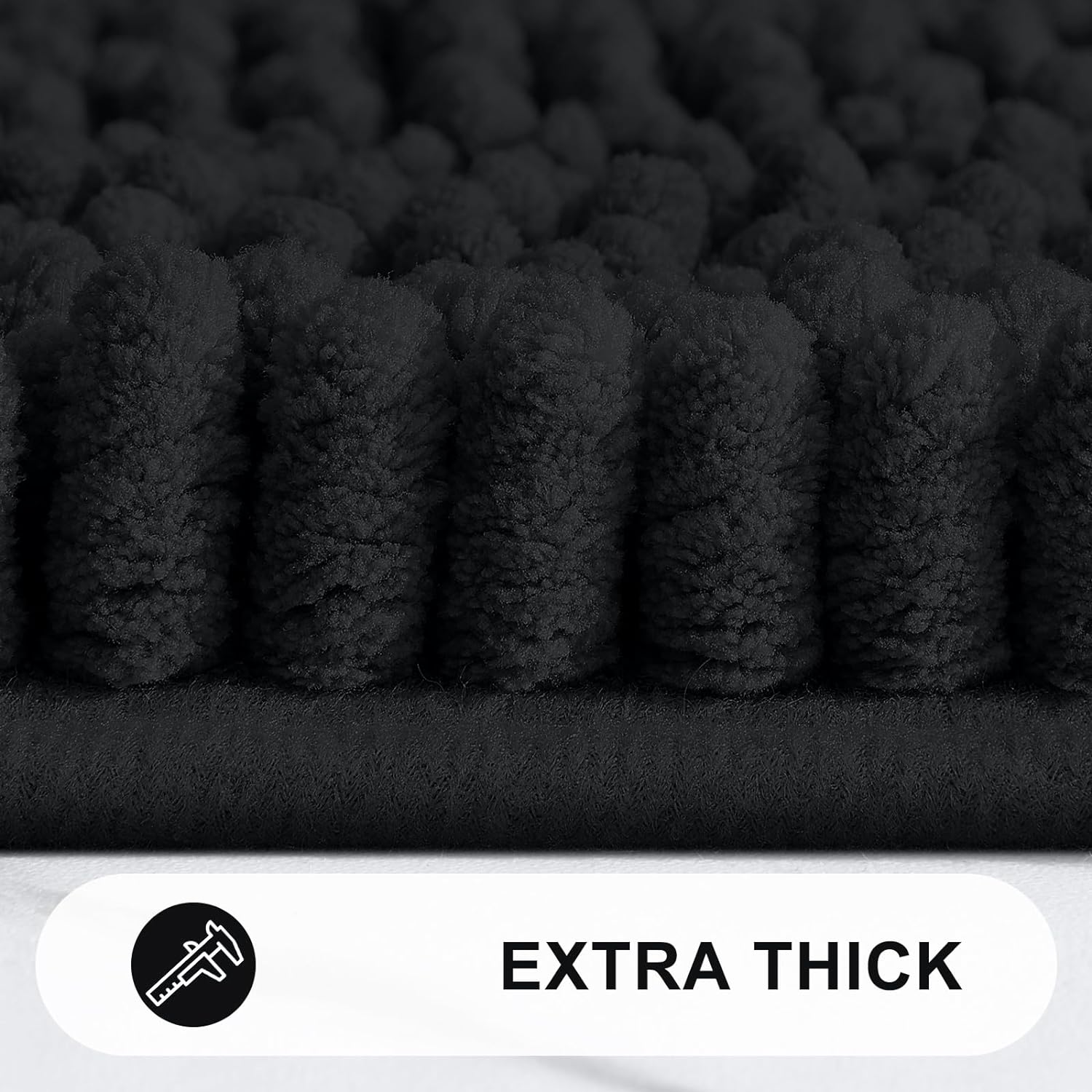 Grandaily Chenille Striped Bathroom Rugs 70x24, Extra Thick and Absorbent Bath Mats, Non-Slip Soft Plush Shaggy Shower Carpet, Machine Wash Dry, Bath Rug for Bathroom, Black