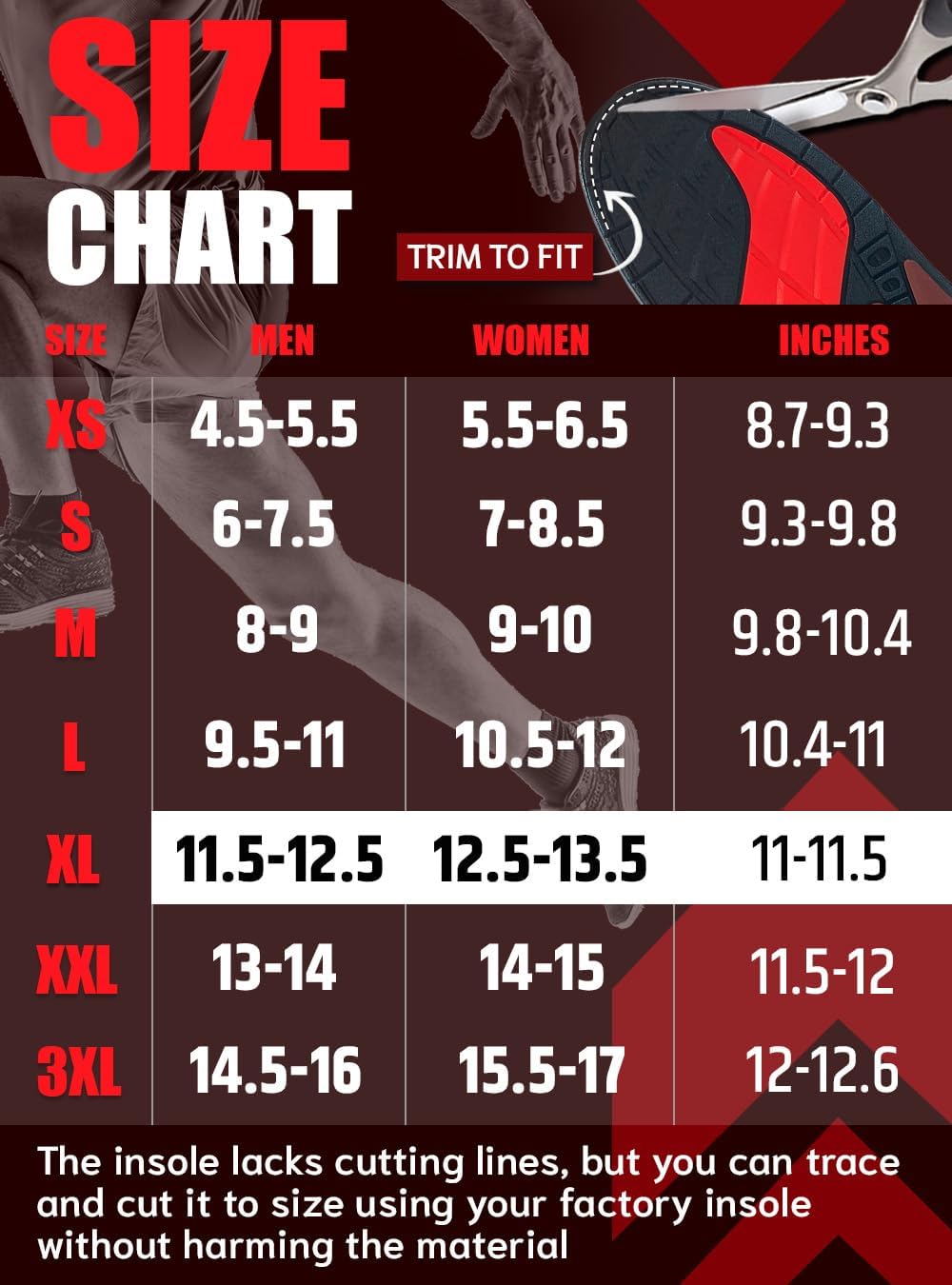 Flex Fit Sport Insoles - Medium Arch Support Inserts - Running Insoles for Sneackers - Shoe Inserts for Men and Women (Red, XL)