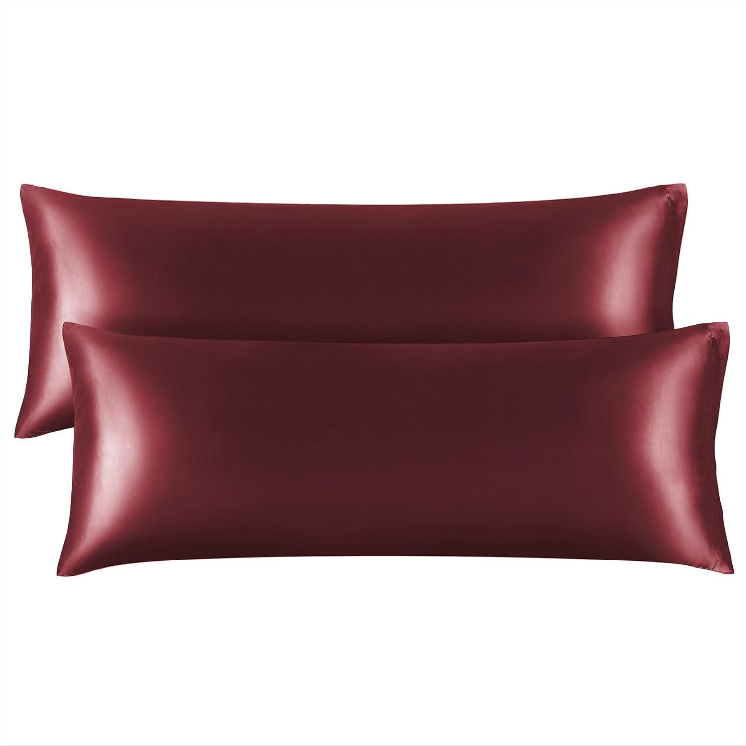 BEDELITE Satin Body Pillow Cover 2 Pack, Super Soft and Cooling Body Pillow Pillowcase for Hair and Skin, Breathable Silky Full Long Pillowcase Cover(20"x54", Burgundy)