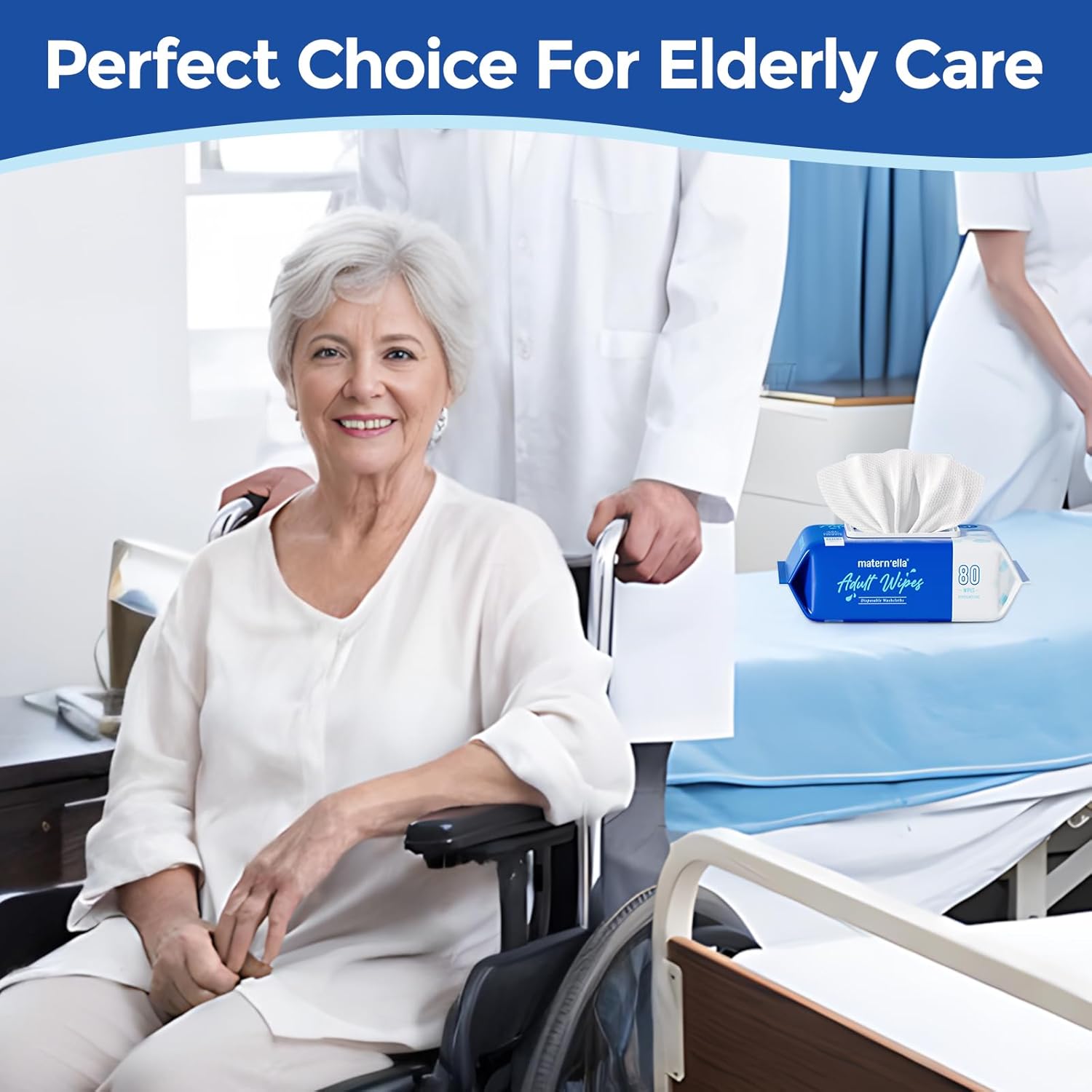 MATERN'ELLA Adult Wet Wipes, Cleansing Wash Cloths for Elderly Care, 99% Pure Water for Incontinence, Personal Bath, Alcohol-Free, 4 Flip-Top Packs(320 Wipes Total)