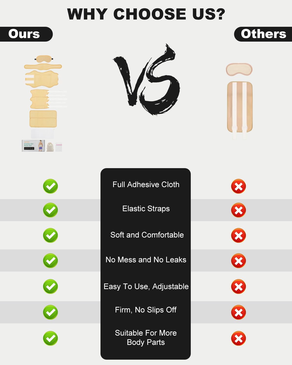 - 【3-Layer Material】Outer layer: Easily pasted full adhesive cloth, fix it on your body better. Middle layer: Waterproof & leakproof material prevents leakage. Inner layer: Soft flannel cotton for better castor oil absorption without harming the skin