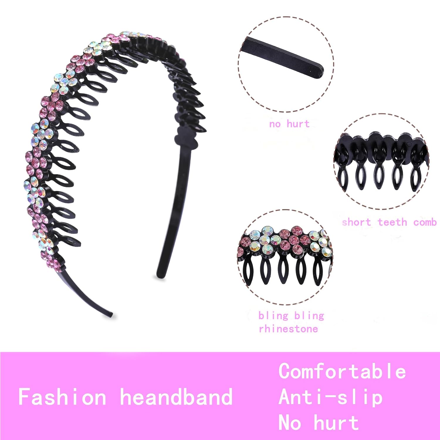 Rhinestone Headband with Teeth Comb Flower Glitter Headband for Women Girls Sparkly Crystal Plastic Hairband Non Slip Hair Hoop Hair Accessories for Ladies Girls with 4PCS