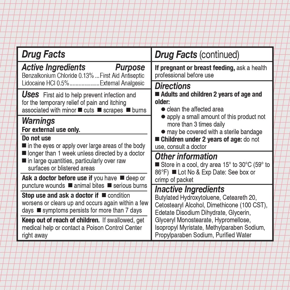 - INFECTION PREVENTION: Contains Active Ingredient Benzalkonium Chloride 0.13% helps prevent infection with minor cuts, scrapes, and burns.