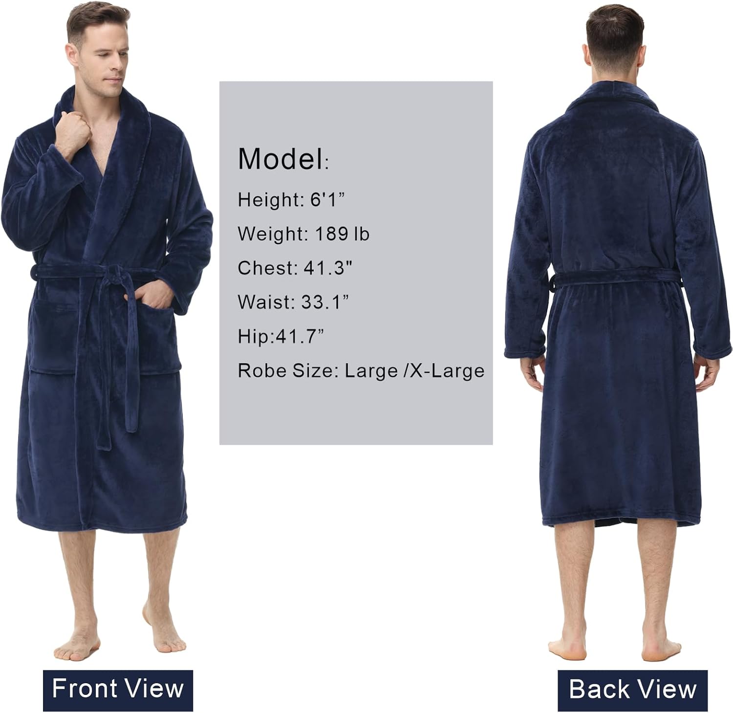 • 【SOFT FLEECE MENS ROBE】Made of fleece, this men's robe is super soft and cozy, warm and lightweight, perfect for lounging and relaxation at home and a great choice to wear after a tiring day at work.