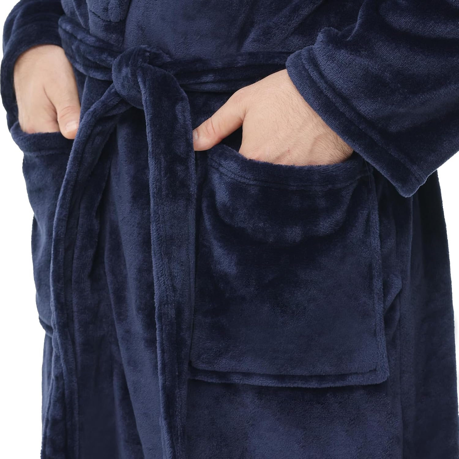 Yurhap Mens Fleece Robe, Soft Plush Robe for Men, Fluffy Bathrobe with Belt & 2 Pockets