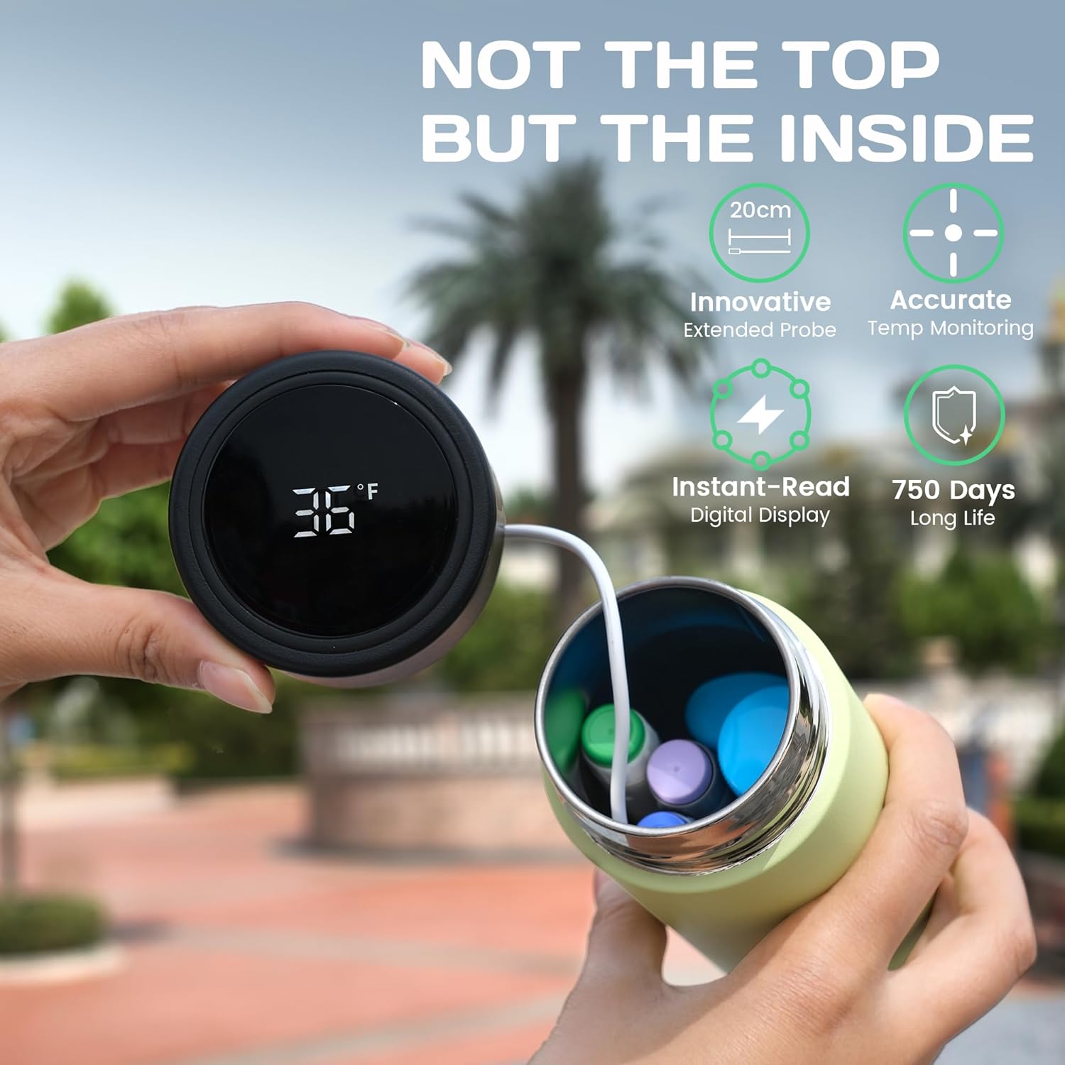 - REAL-TIME TEMPERATURE MONITORING: Stay informed with a bright digital display integrated into the bottle cap, simplifies temperature monitoring and showing you the exact temperature of the insulin at all times, allowing you to always know the temperature of the insulin storage without opening the cooler for enjoy medicine travel