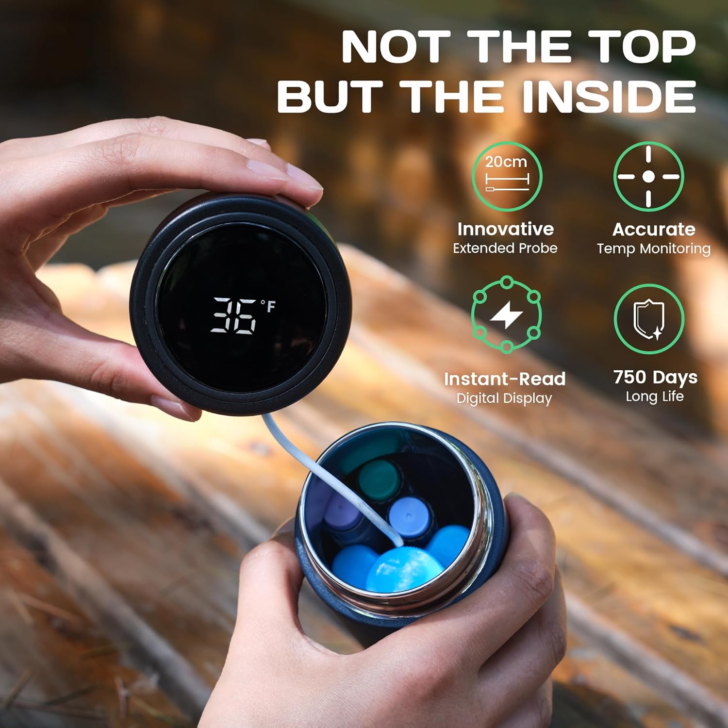 - REAL-TIME TEMPERATURE MONITORING: Stay informed with a bright digital display integrated into the bottle cap, simplifies temperature monitoring and showing you the exact temperature of the insulin at all times, allowing you to always know the temperature of the insulin storage without opening the cooler for enjoy medicine travel