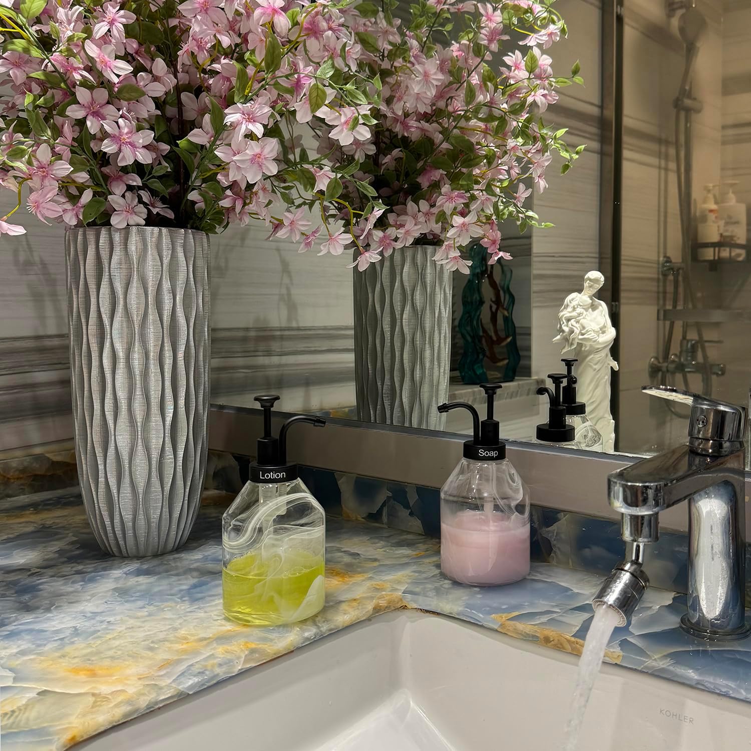 Bathroom Glass Soap Dispenser Set, 2 Pcs Unique 3D Cloud Pattern Thick Glass Soap Bottle with Rust-Free Black ABS Pump for Kitchen Counter Dish Soap Dispenser (375ml/12.7 Oz)