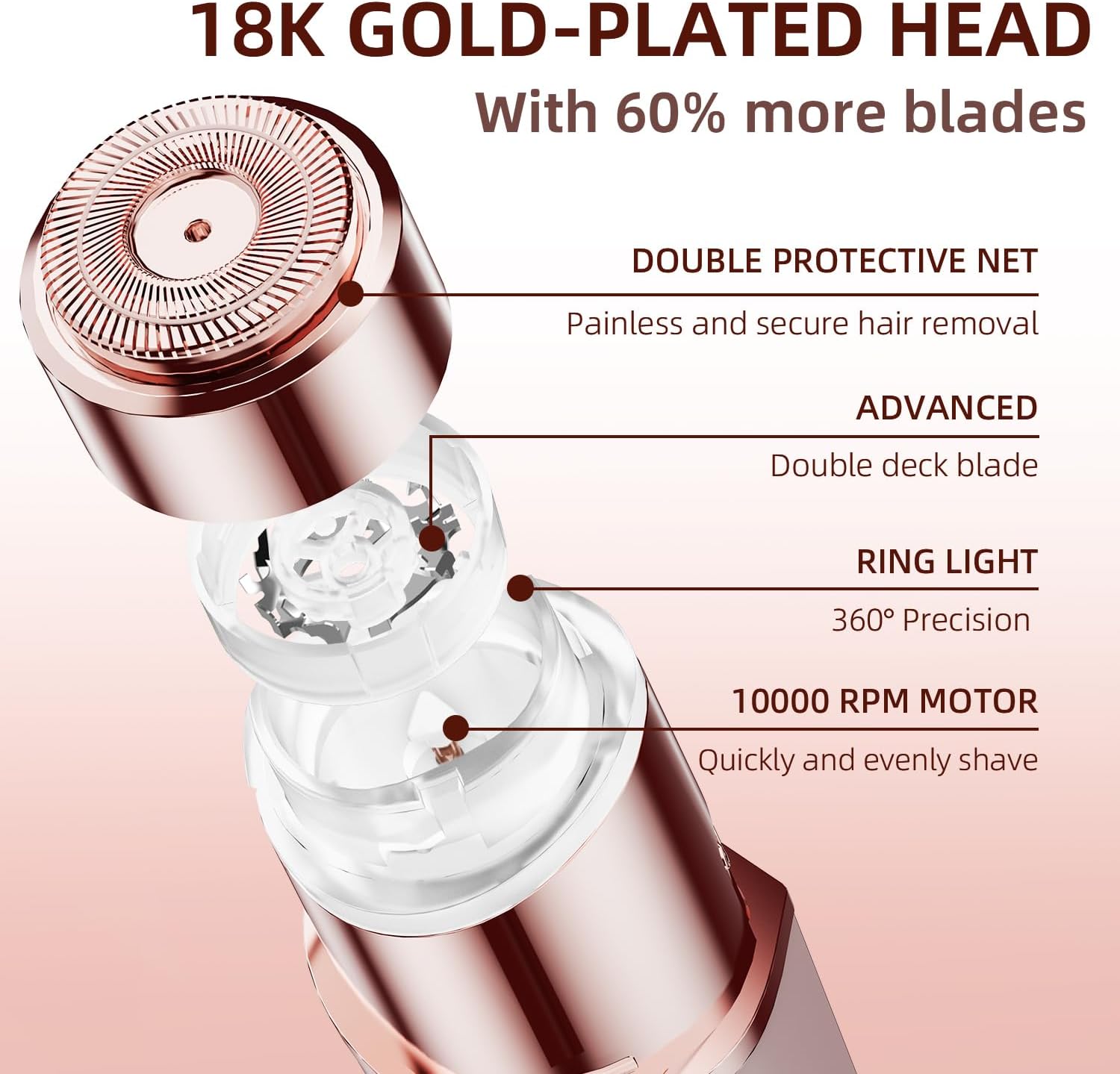 Facial Hair Removal for Women, Portable Lady Shaver, Rechargeable Painless Hair Remover for Face, Upper Lips, Chin, Peach Fuzz
